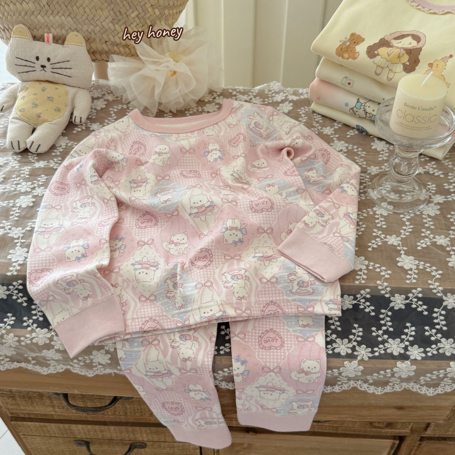 헤이 허니 남아 여아용 300g 부드러운 가을옷 세트 아동용 잠옷