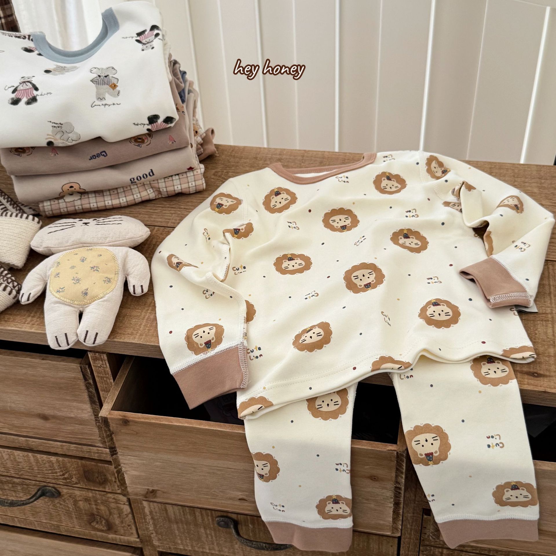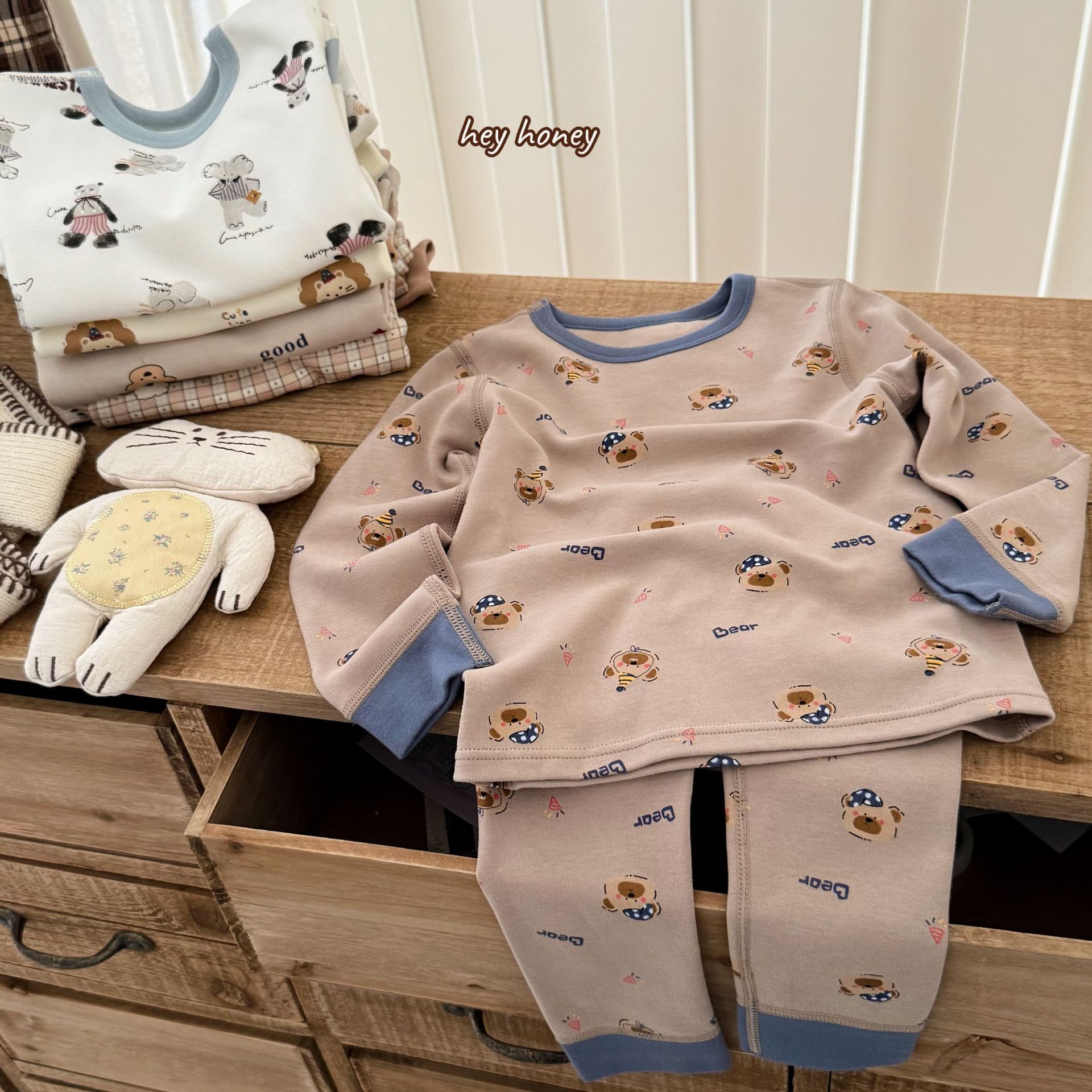헤이 허니 남아 여아용 300g 부드러운 가을옷 세트 아동용 잠옷스토어 가기