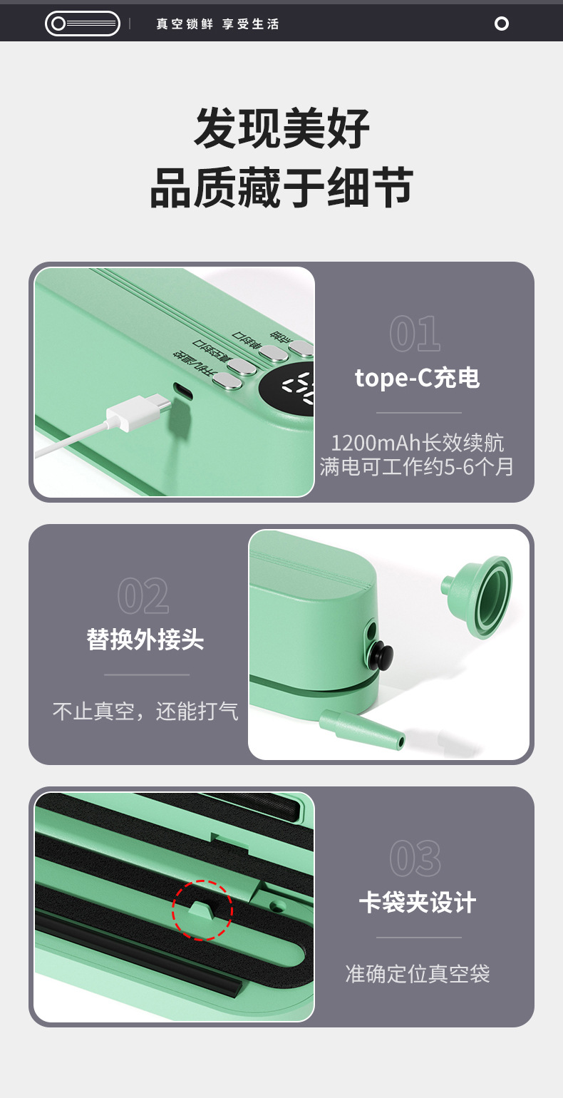 다기능 부엌 보존 진공 기계 가정용 작은 충전식 식품 밀봉 기계 자동 밀봉 진공 추출기스토어 가기
