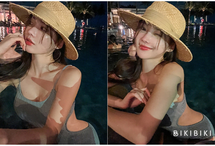 여자 원피스 수영복 단색 니트 섹시한 슬림 허리 한국 스타일의 수영복 온천 휴가