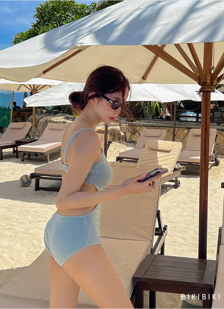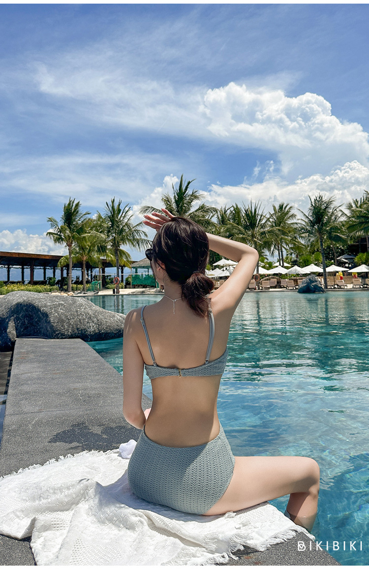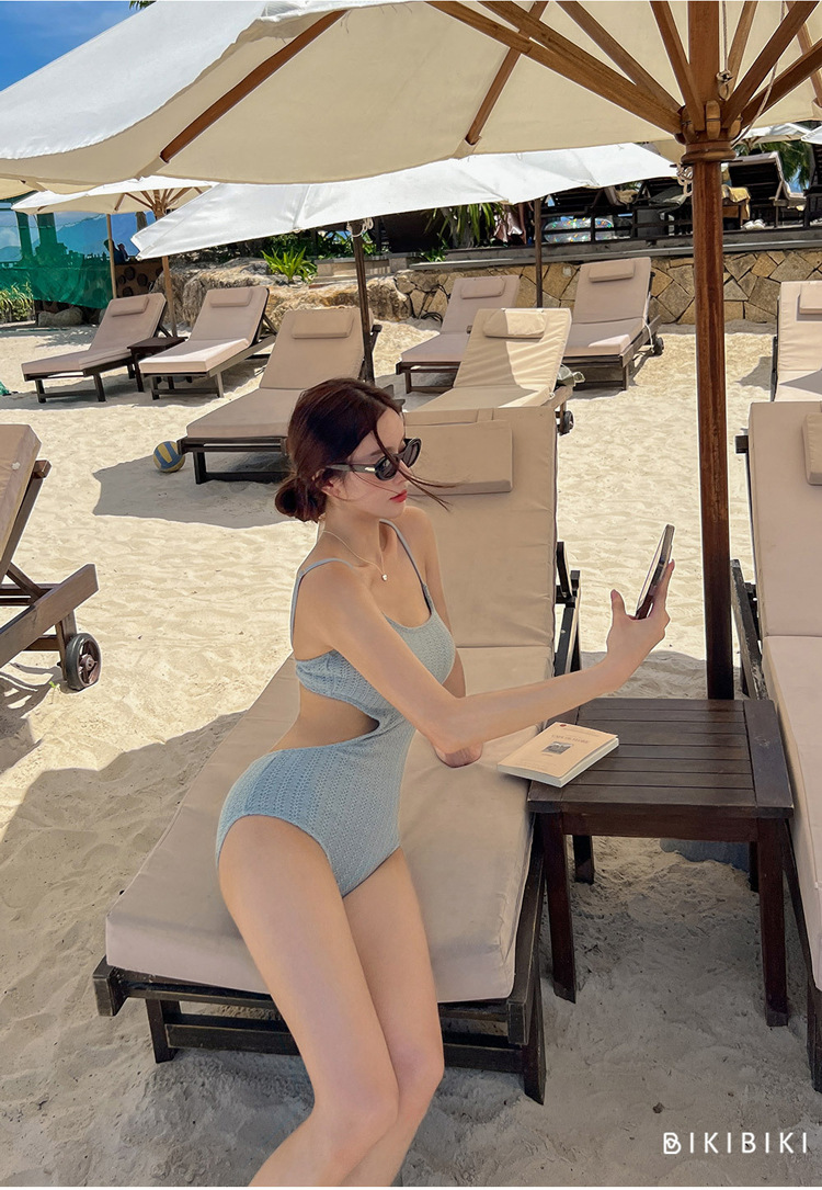 여자 원피스 수영복 단색 니트 섹시한 슬림 허리 한국 스타일의 수영복 온천 휴가스토어 가기
