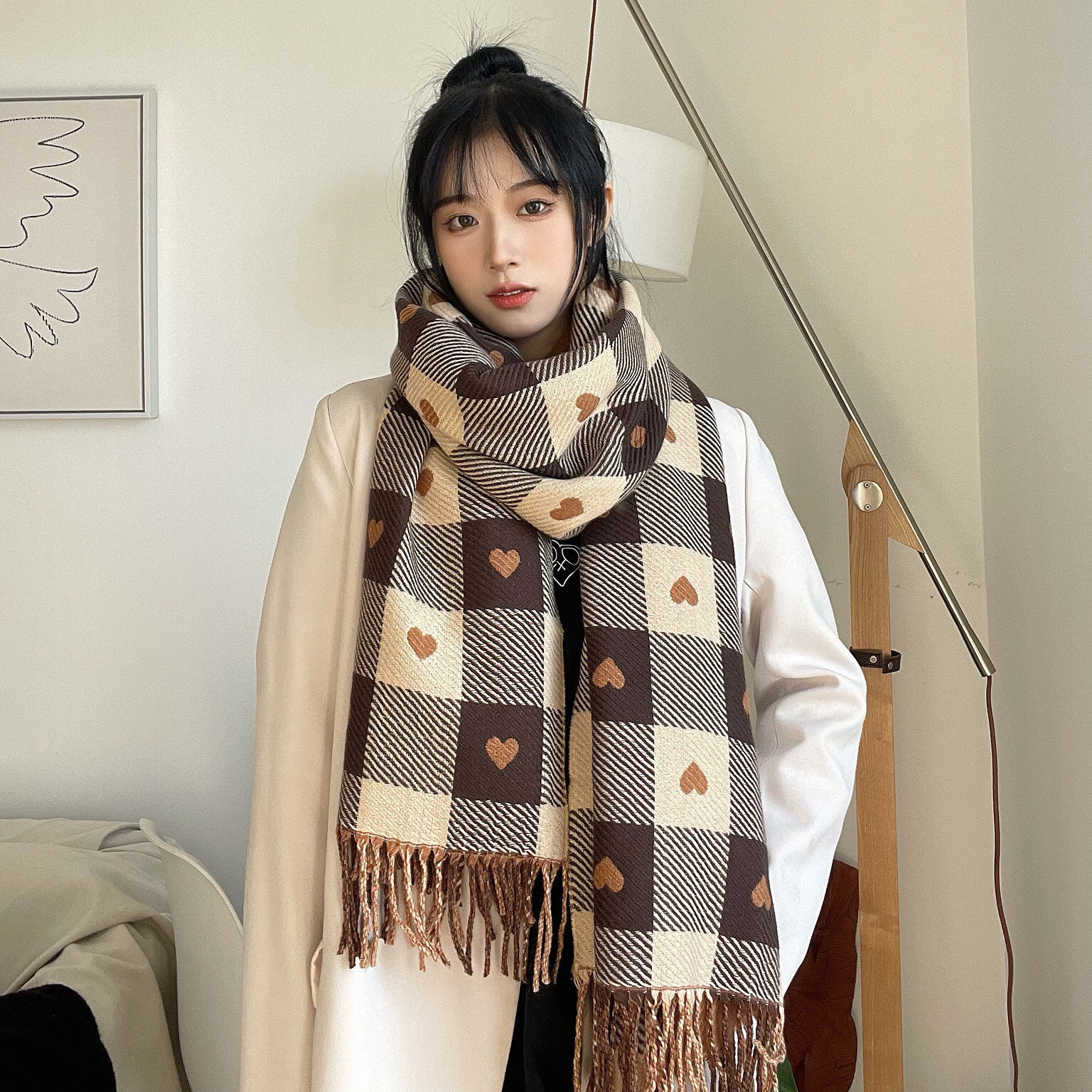 스카프 여성 가을과 겨울 새로운 캐시미어 러브 체크 무늬 스카프 패션 올 매치 양면 두꺼운 커플 따뜻한 목도리스토어 가기