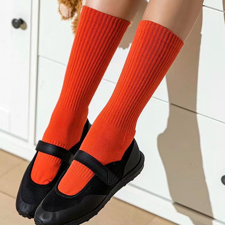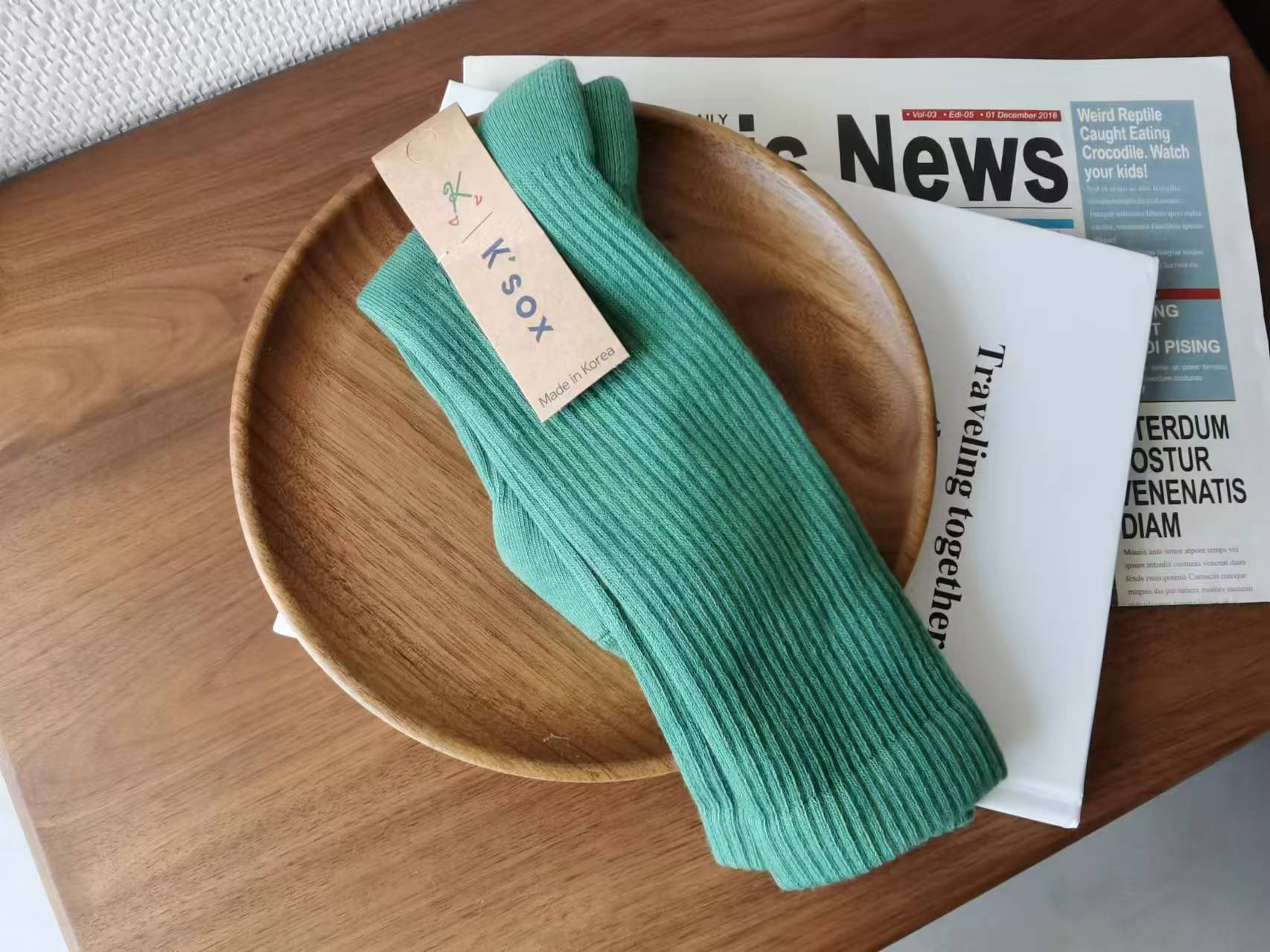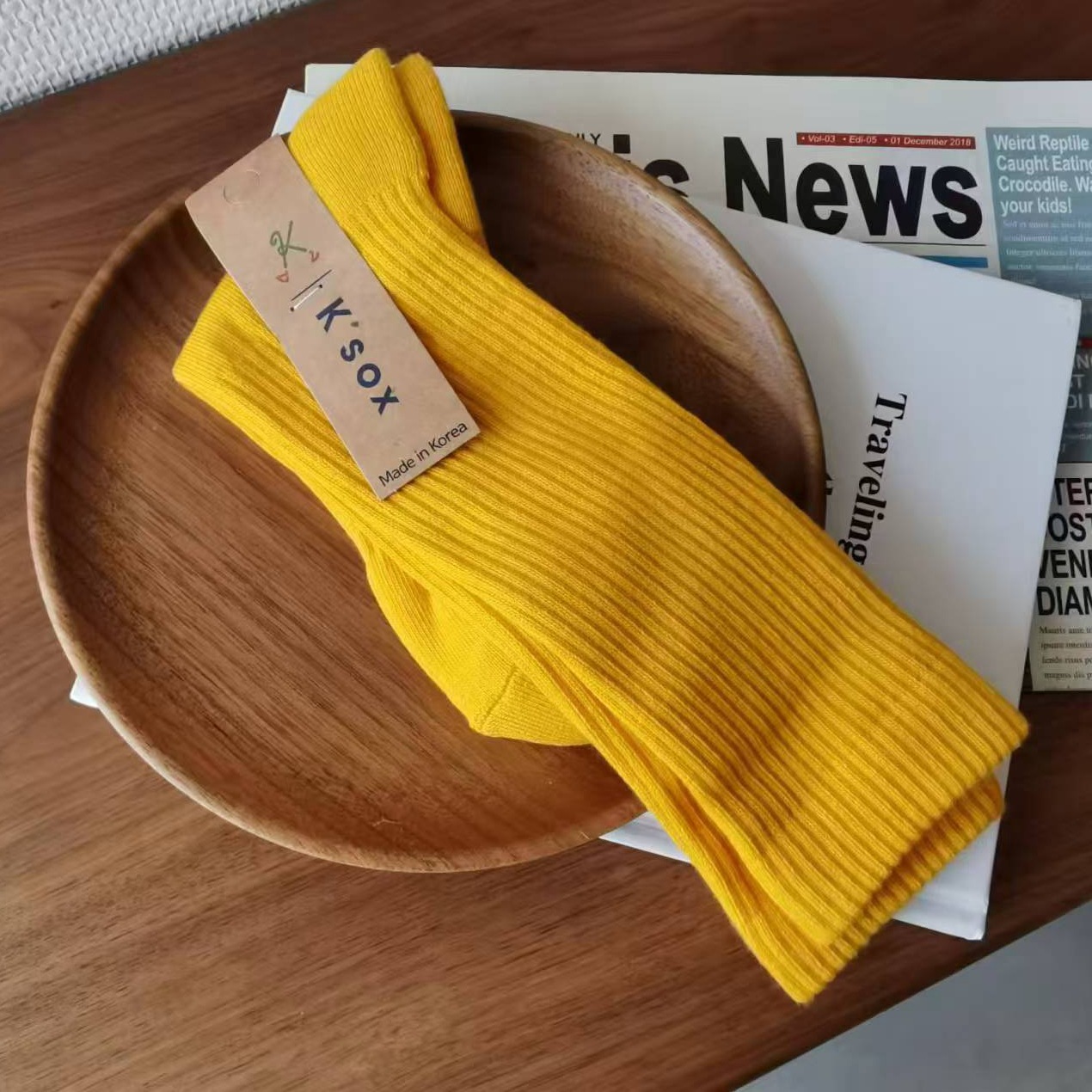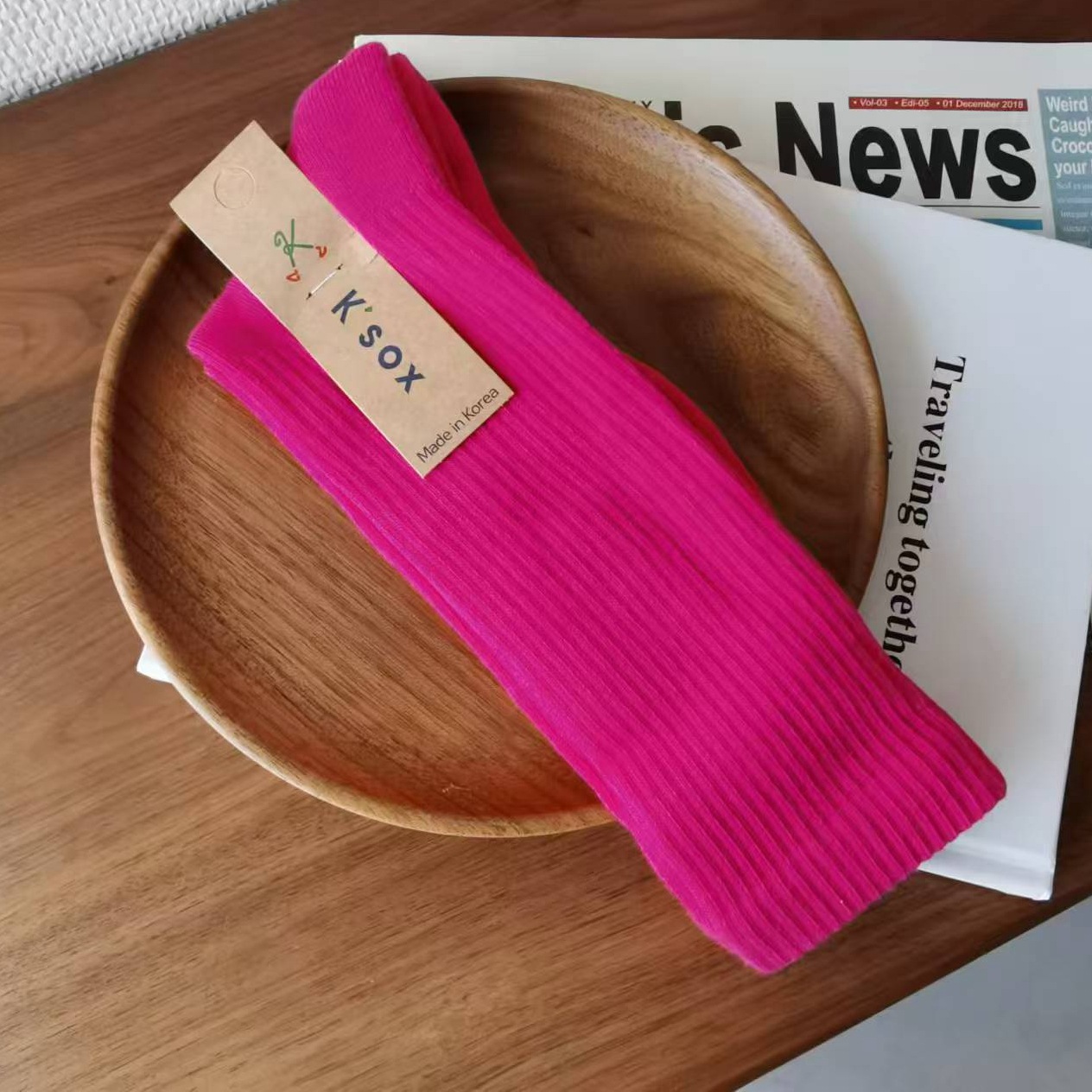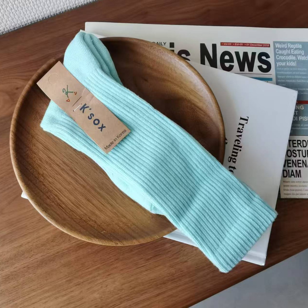 국경 간 세대 헤어 가을과 겨울 높은 튜브 여성용 코튼 양말 간단한 캔디 컬러 스포츠 요가 양말 단색 KSOX 한국 양말