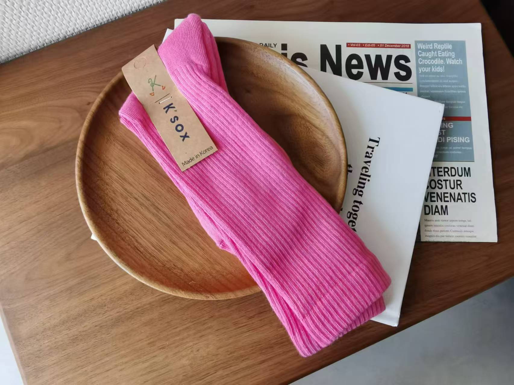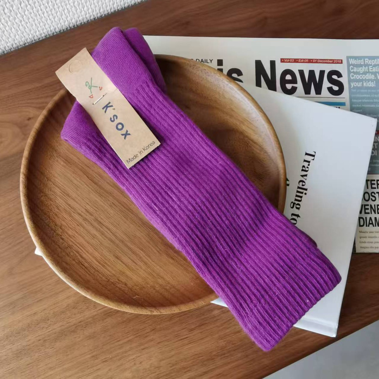 국경 간 세대 헤어 가을과 겨울 높은 튜브 여성용 코튼 양말 간단한 캔디 컬러 스포츠 요가 양말 단색 KSOX 한국 양말스토어 가기