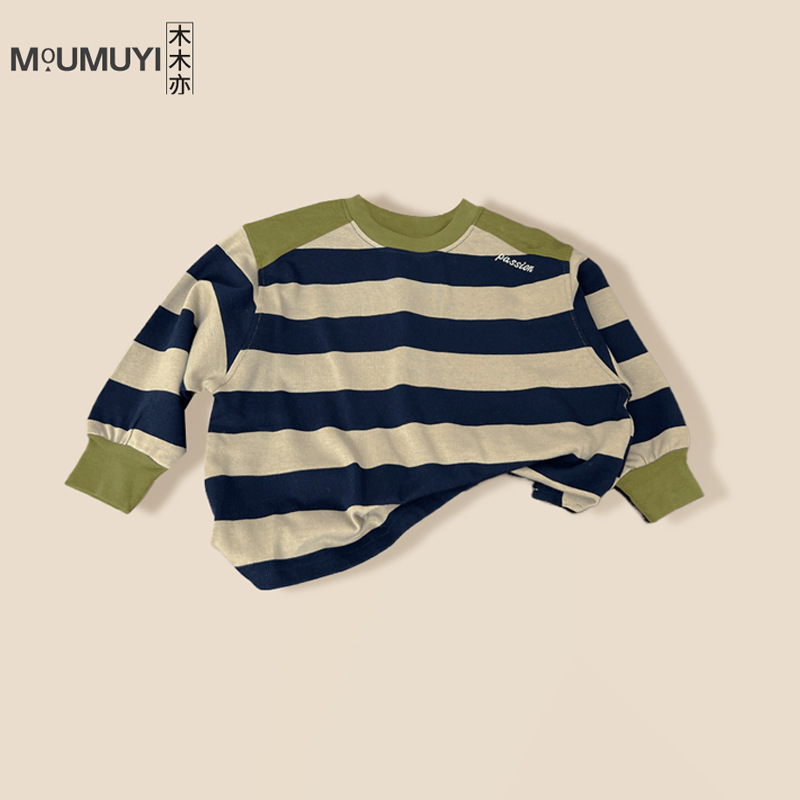 어린이 2024 가을 새 컬러 블록 긴팔 최고 가을 소년 아기 스타일리스트 스트리트 프라이드 코튼 스트라이프 스웨터스토어 가기
