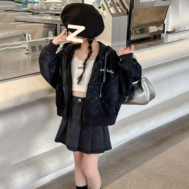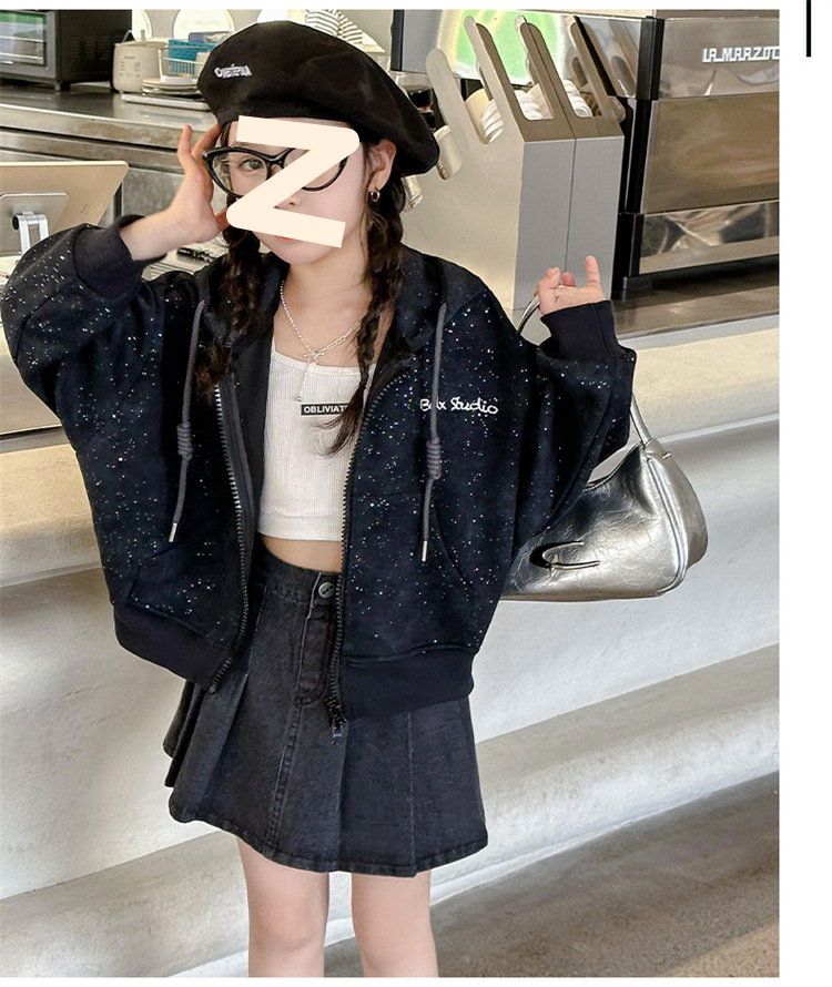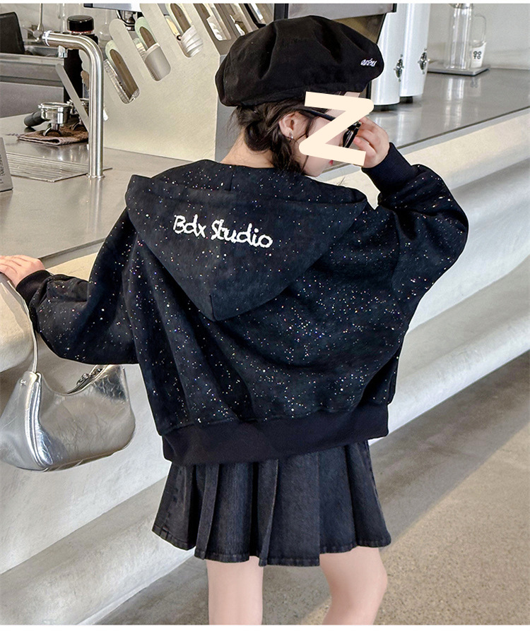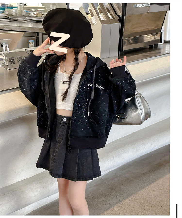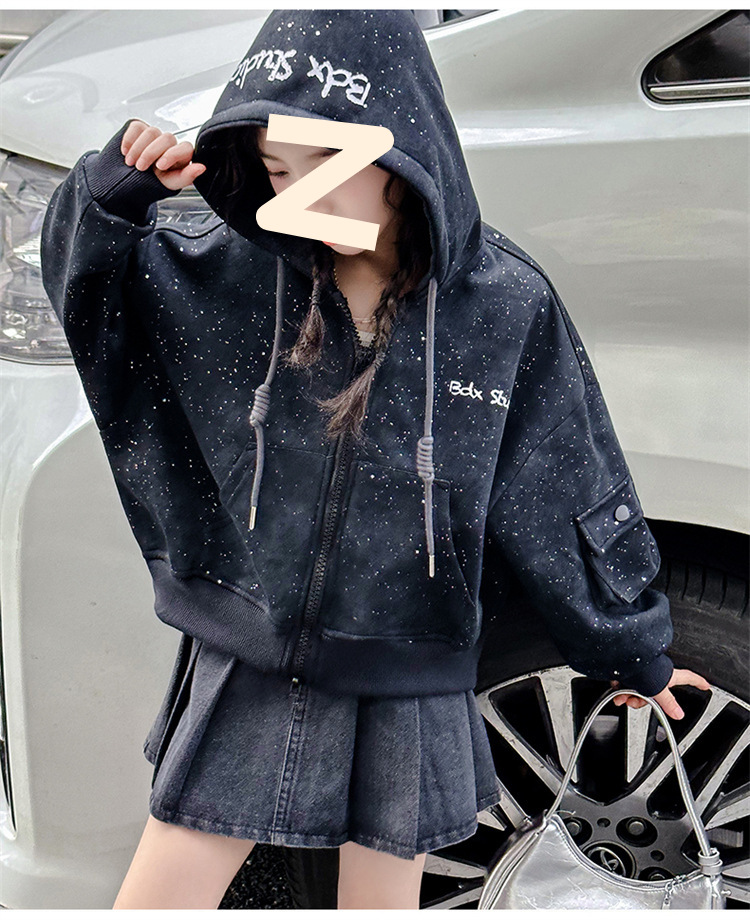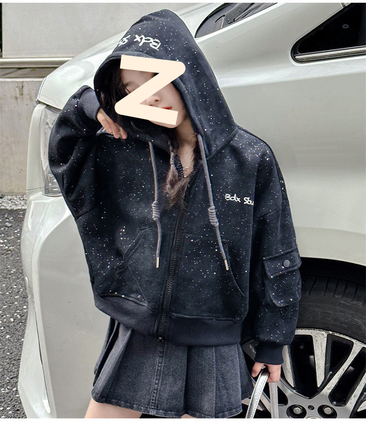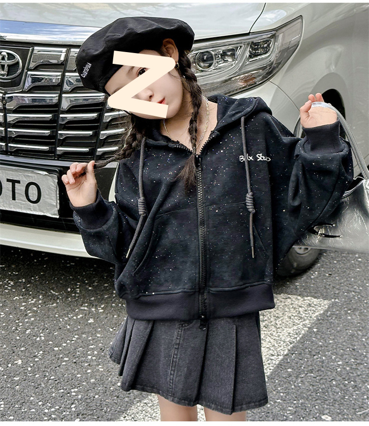 여자 세련된 별 스파클링 자켓 2024 새로운 스타일 세련된 유행 후드 지퍼 카디건 트렌디스토어 가기