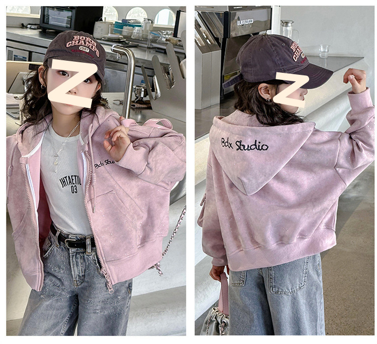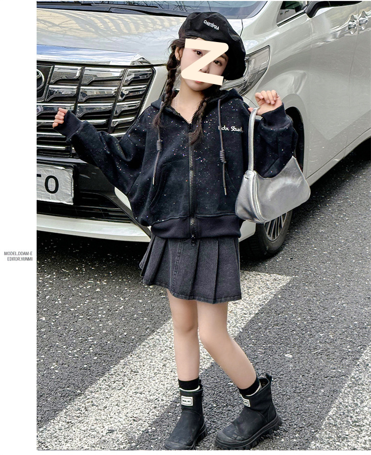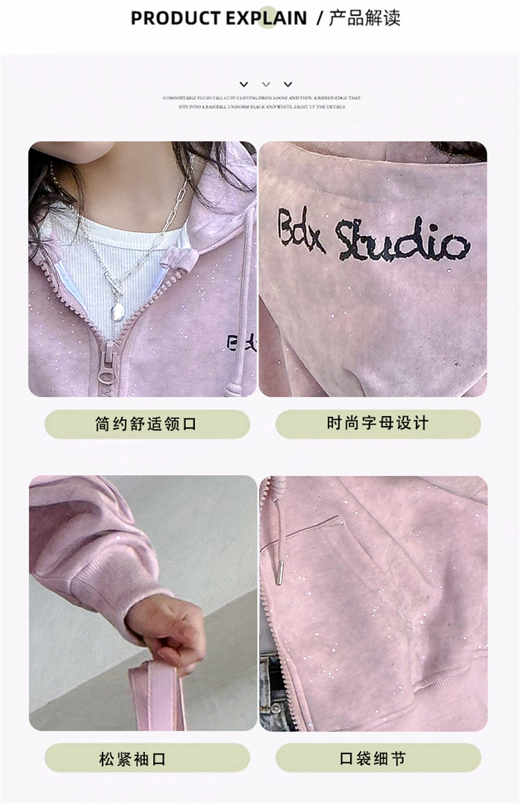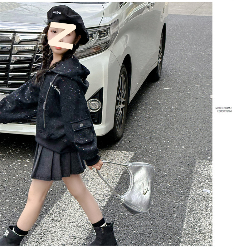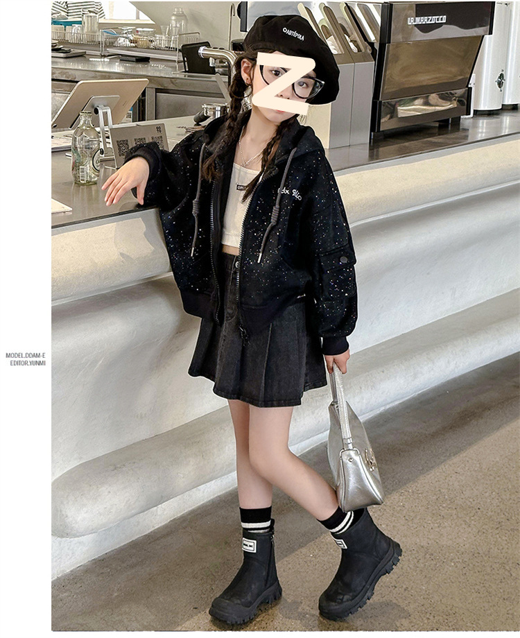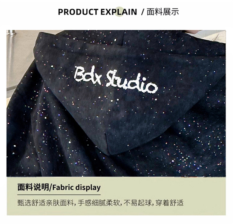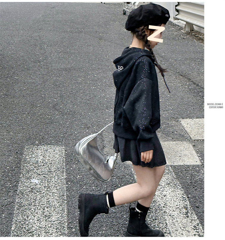 여자 세련된 별 스파클링 자켓 2024 새로운 스타일 세련된 유행 후드 지퍼 카디건 트렌디스토어 가기