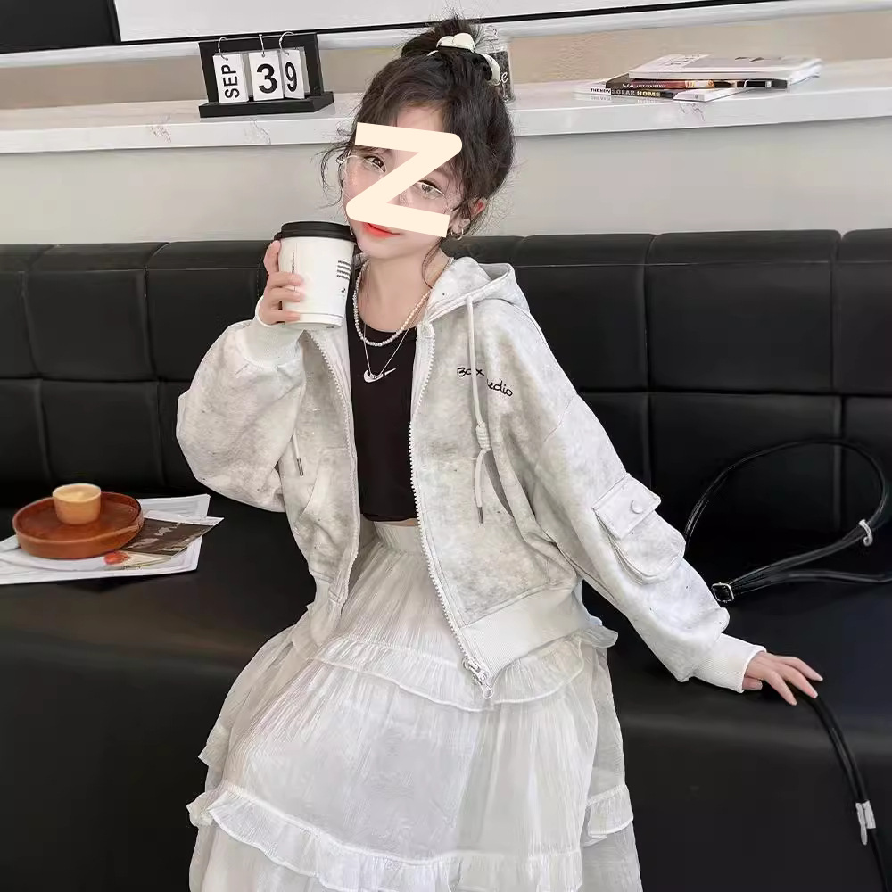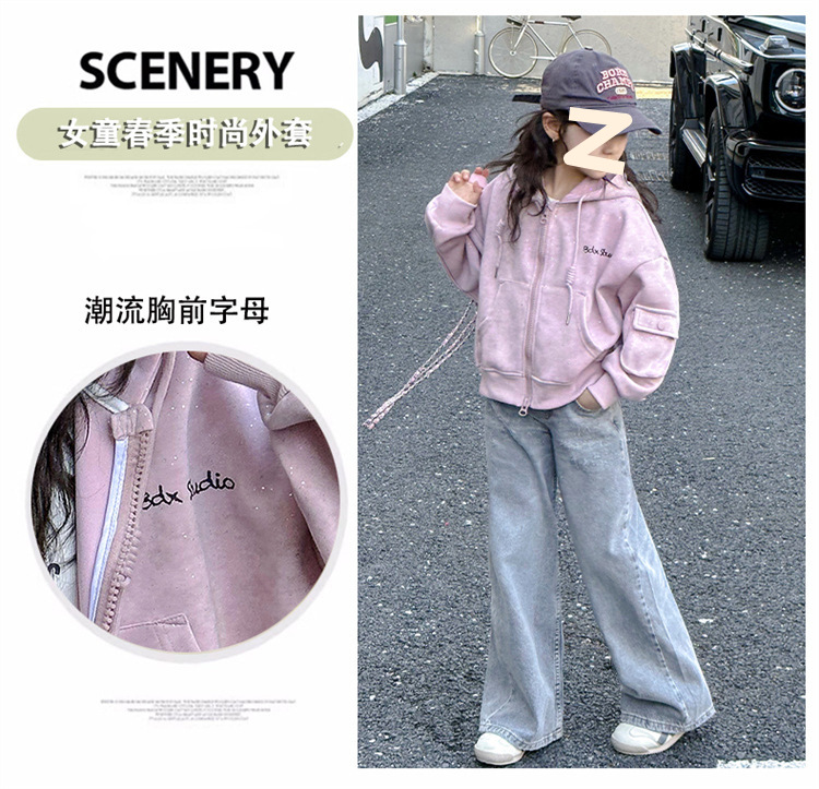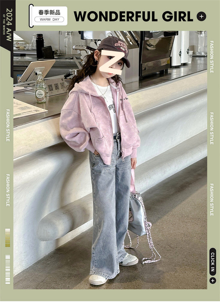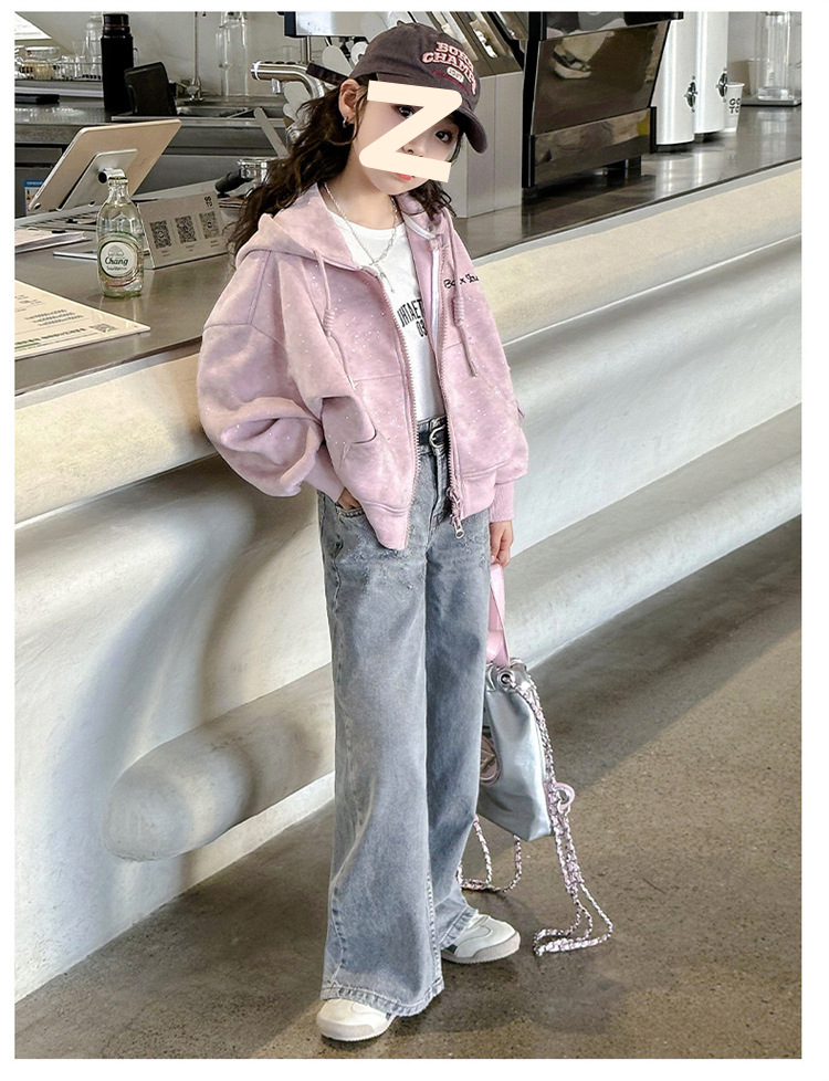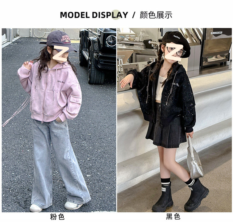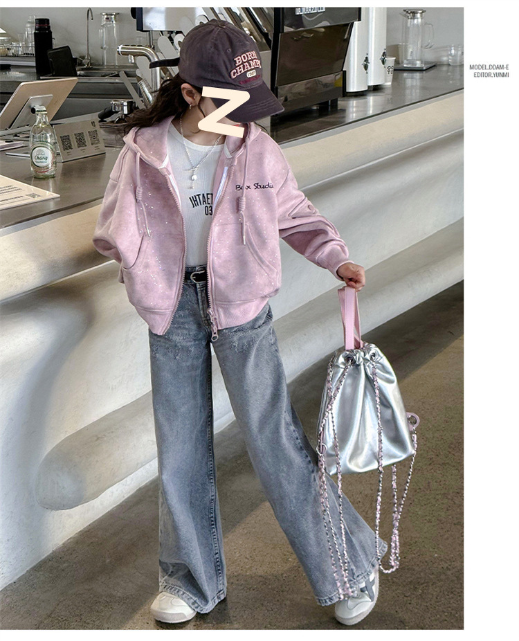 여자 세련된 별 스파클링 자켓 2024 새로운 스타일 세련된 유행 후드 지퍼 카디건 트렌디스토어 가기