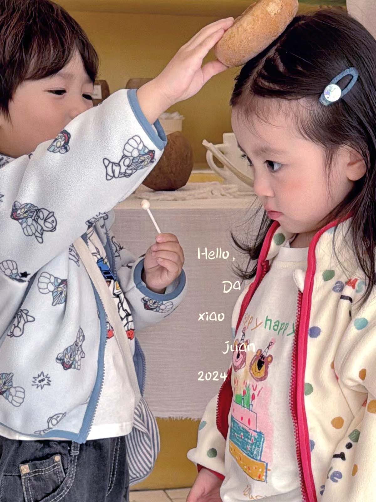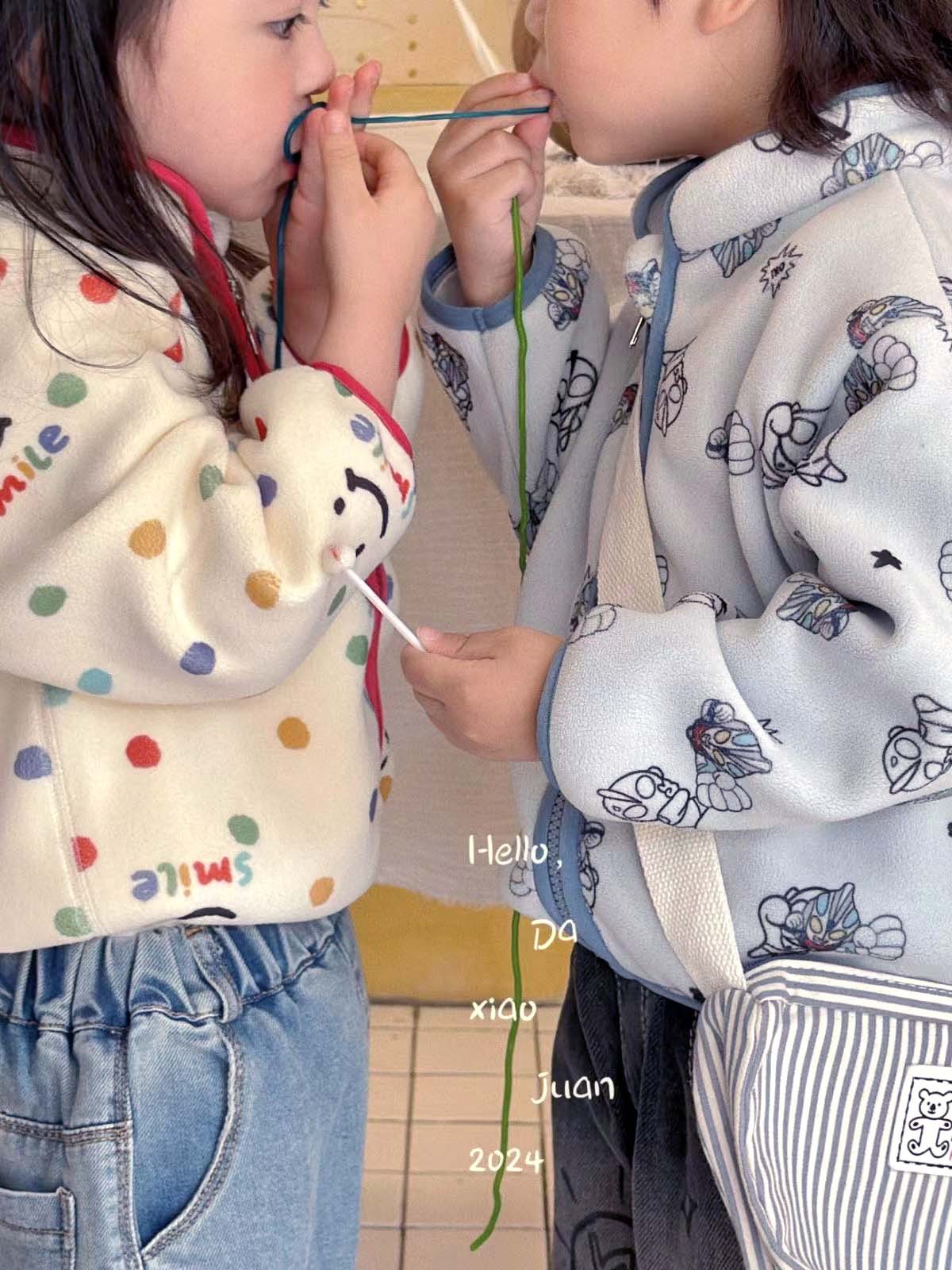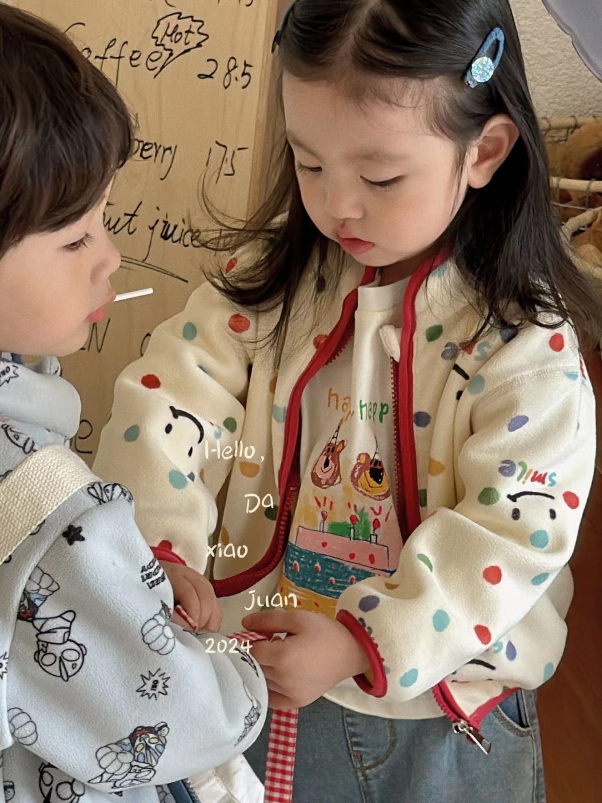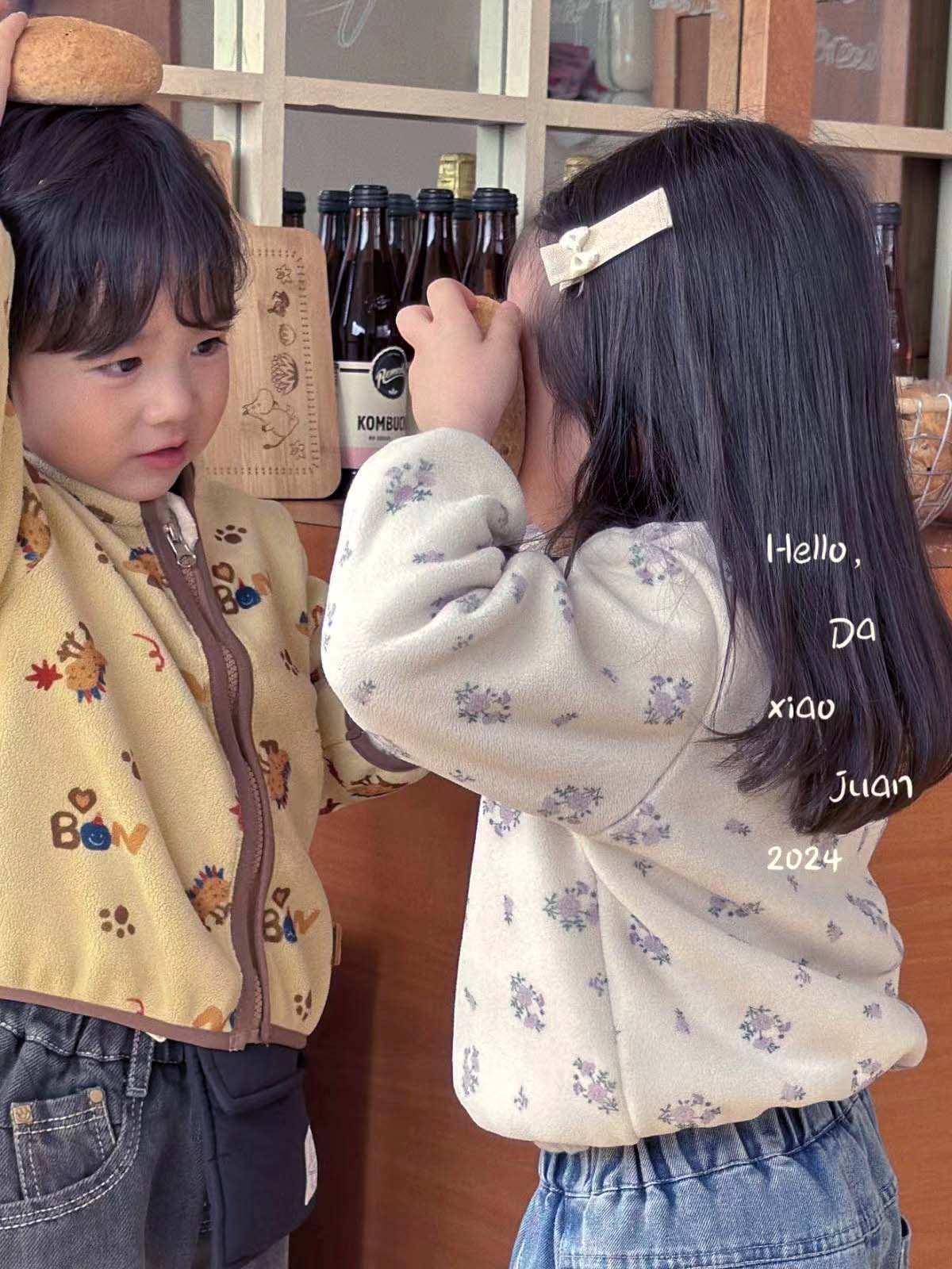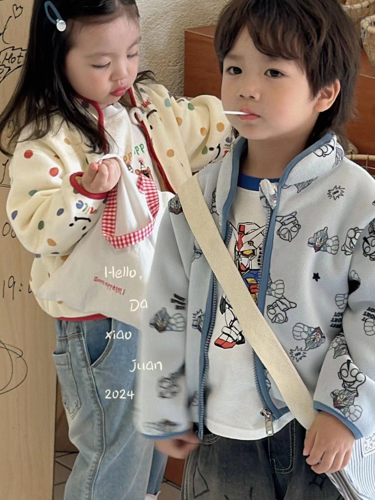 크고 작은 롤 어린이 가을과 겨울 새로운 두꺼운 코트 소년 소녀 만화 Aoli 벨벳 부드러운 한국 벨벳 코트스토어 가기