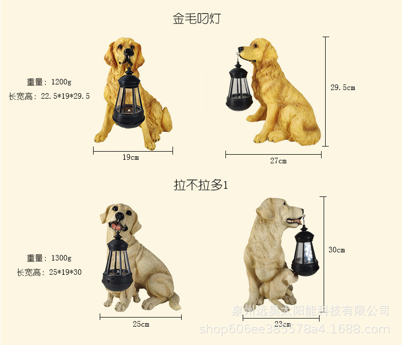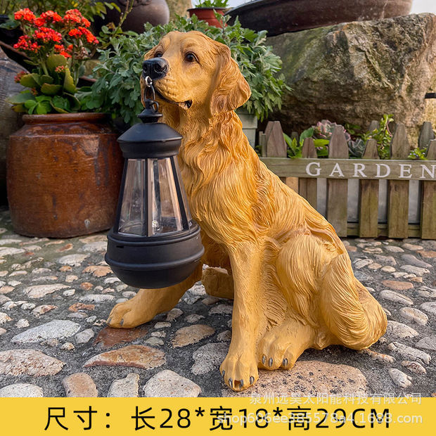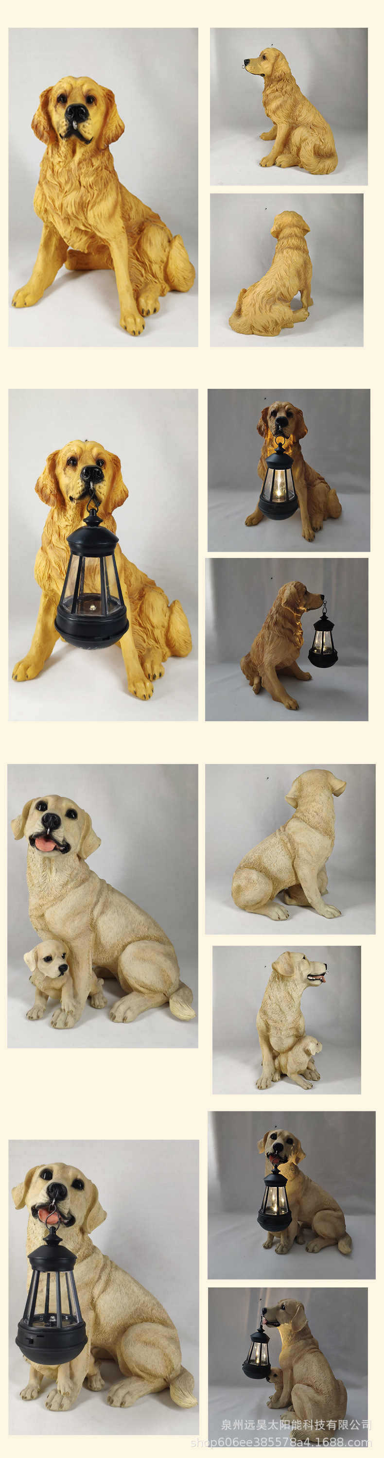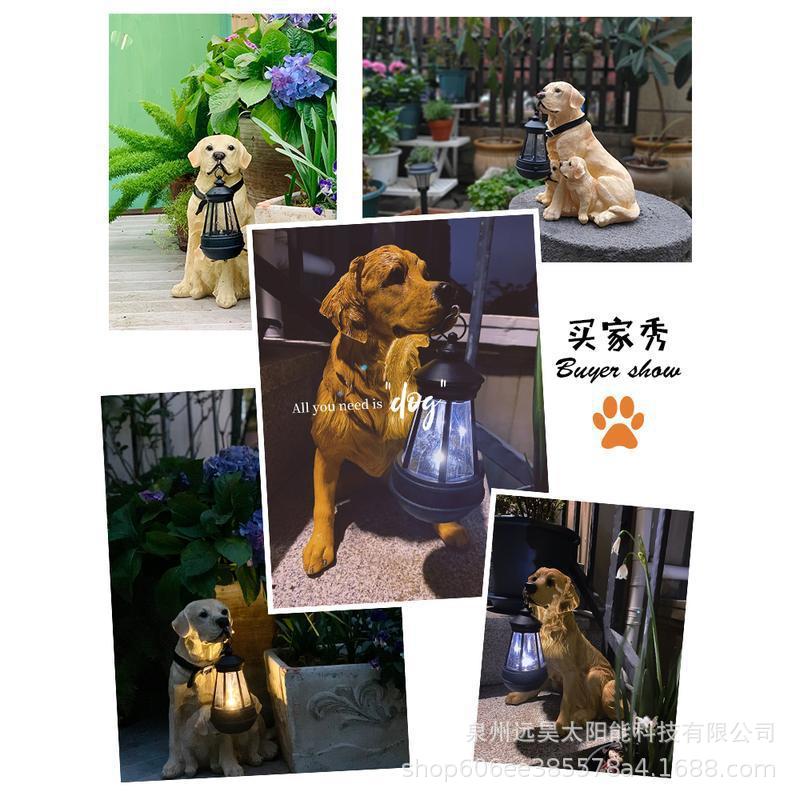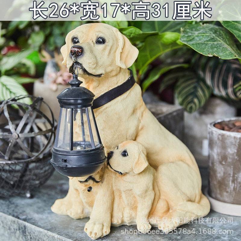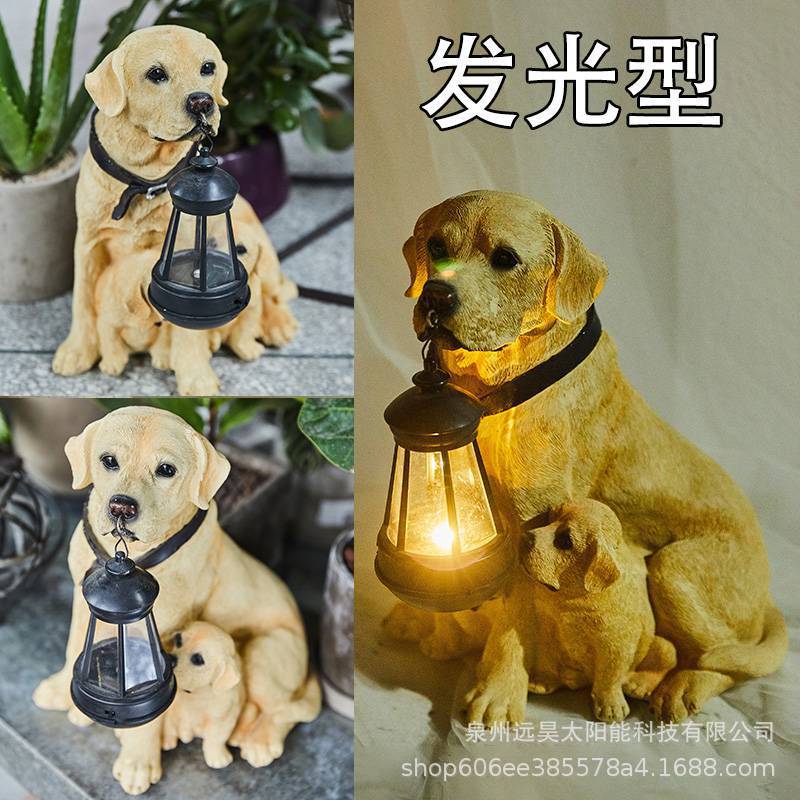 국경 간 태양 정원 조명 래브라도 어머니와 아들 개 장식품 안뜰 정원 야외 장식 수지 공예스토어 가기