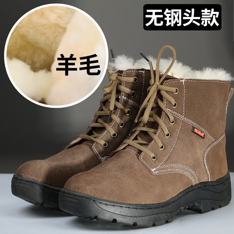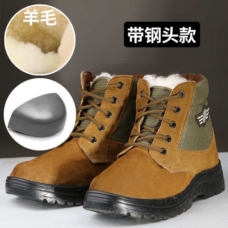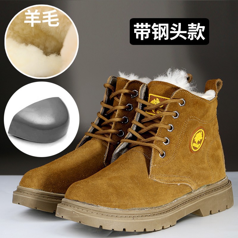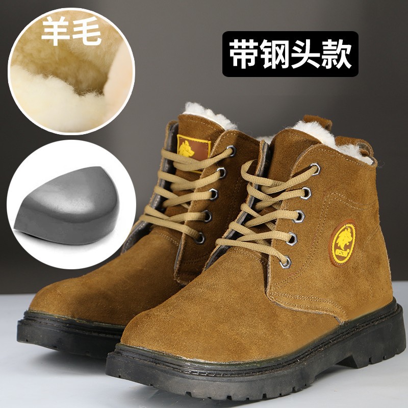 야외 노동 노동 보호 양모 작업 신발 두껍게 따뜻한 코튼 신발 미끄럼 방지 스크래치 방지 Cowhide 보호 신발 남성용스토어 가기