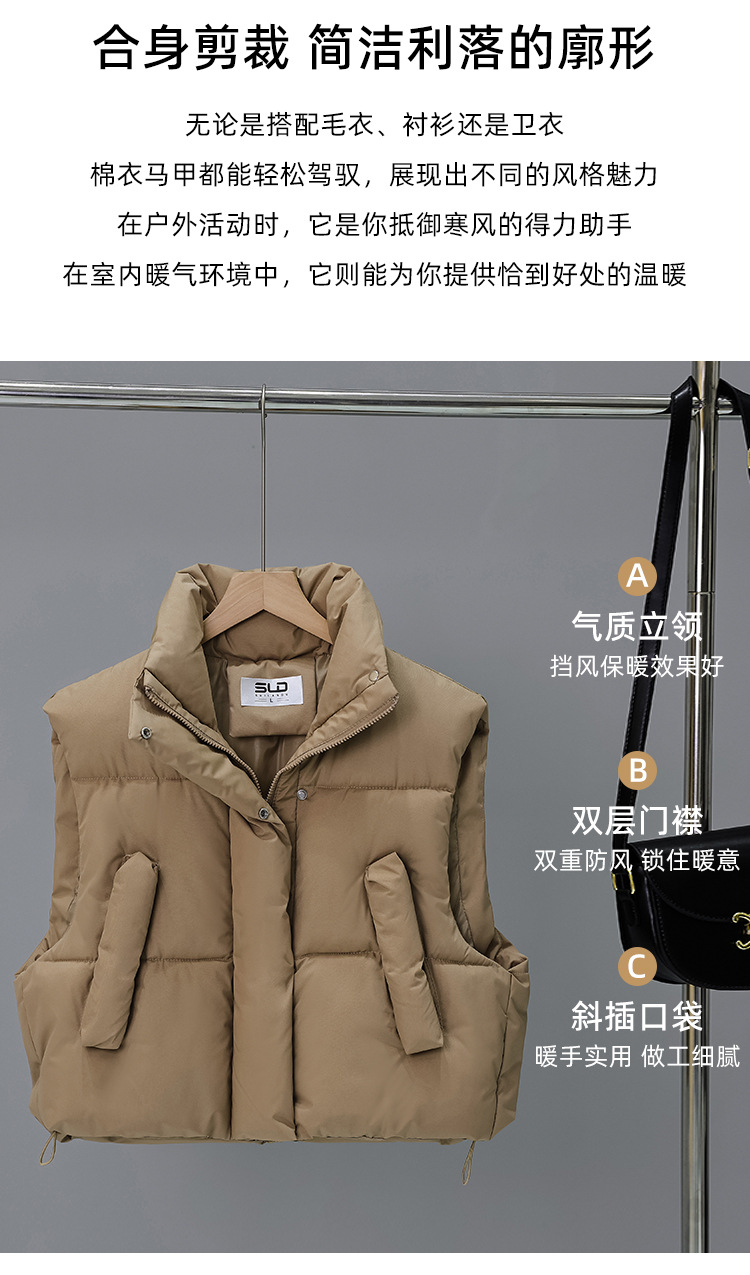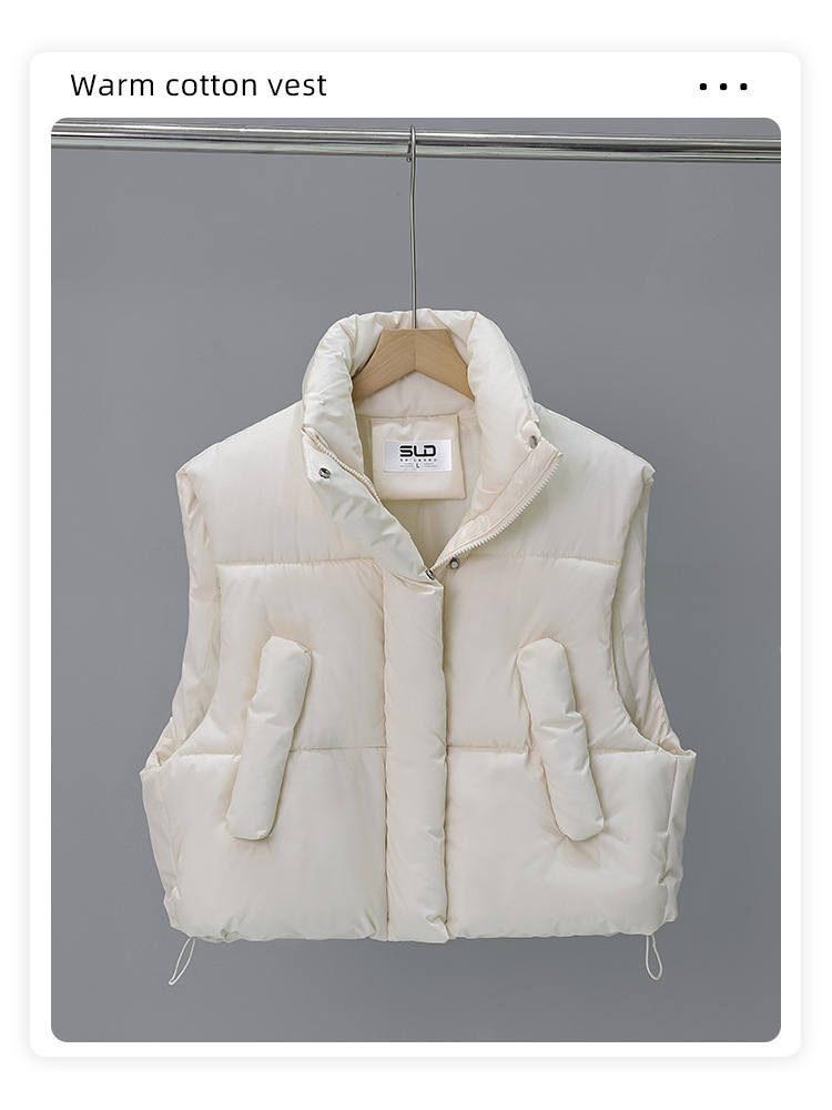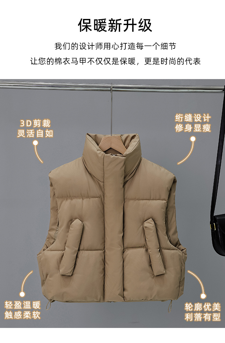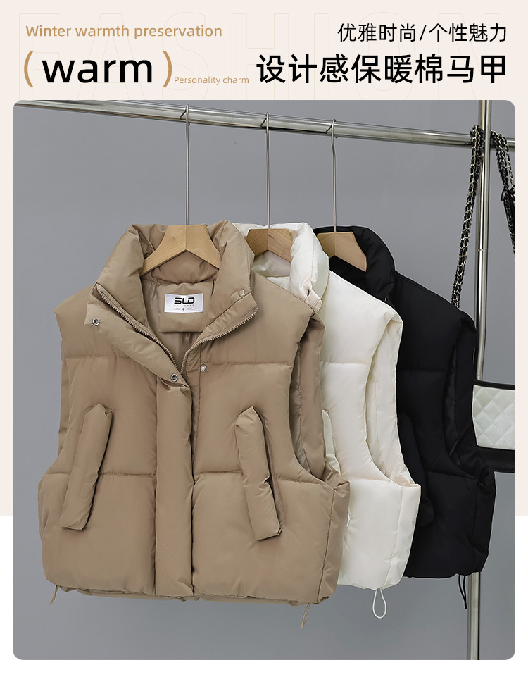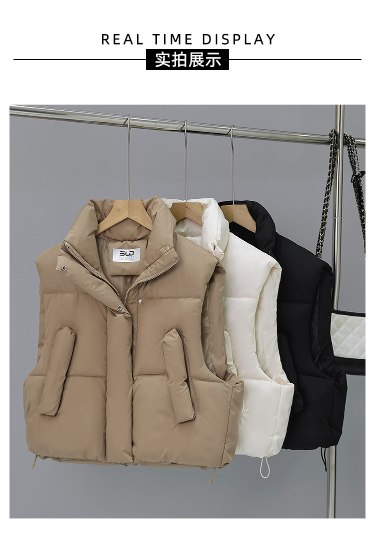 다운 코튼 패딩 재킷 조끼 여성의 2024 가을 및 겨울 새 한국어 버전의 느슨한면 양복 조끼 단색면 패딩 재킷 조끼 코트