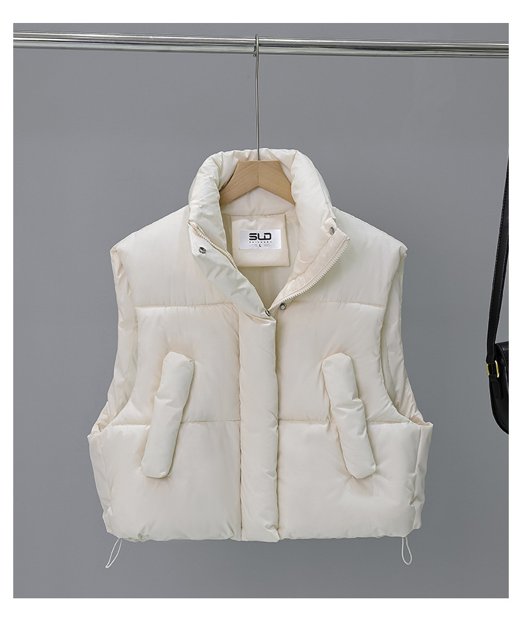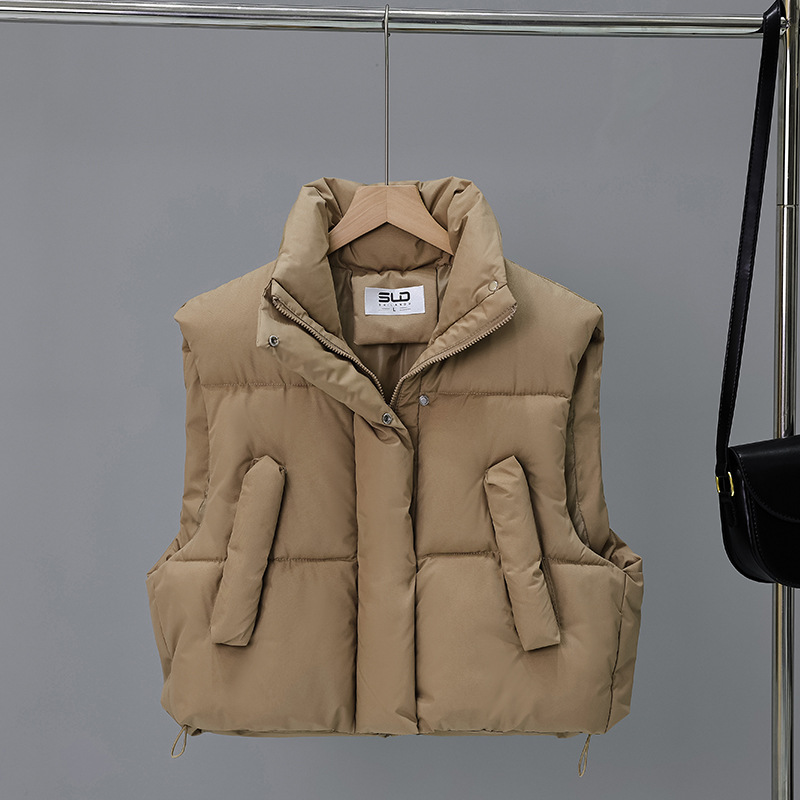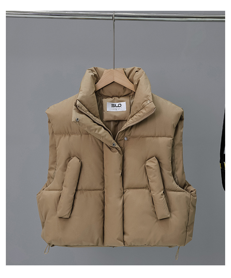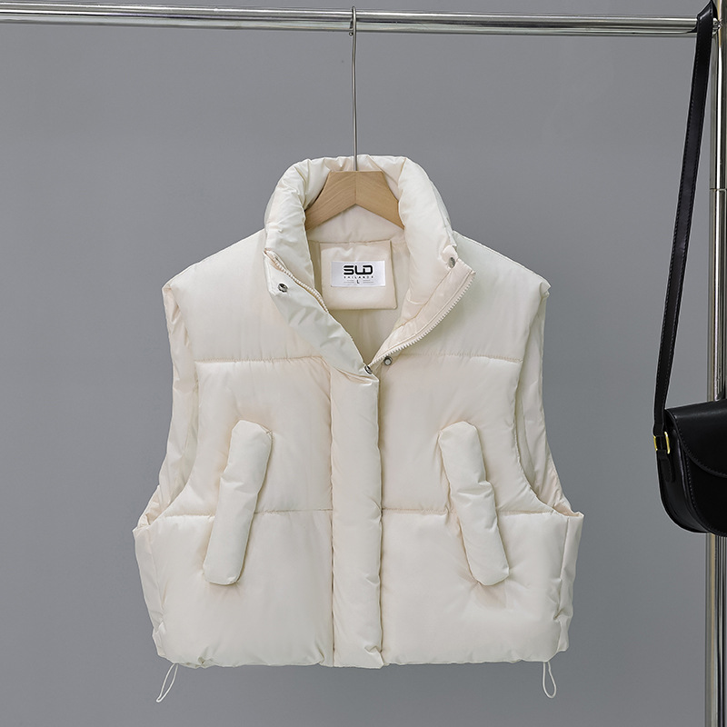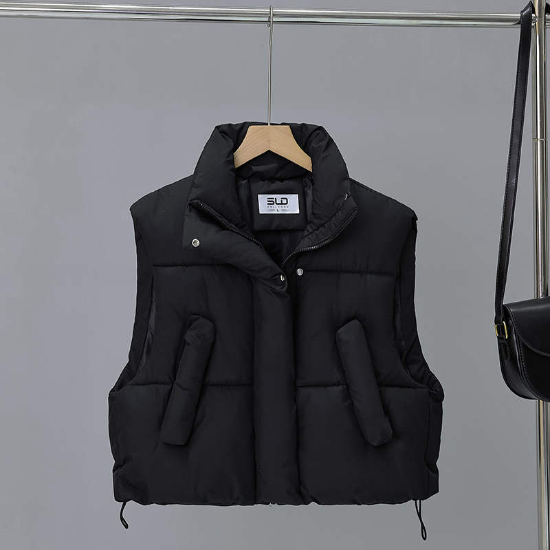 다운 코튼 패딩 재킷 조끼 여성의 2024 가을 및 겨울 새 한국어 버전의 느슨한면 양복 조끼 단색면 패딩 재킷 조끼 코트