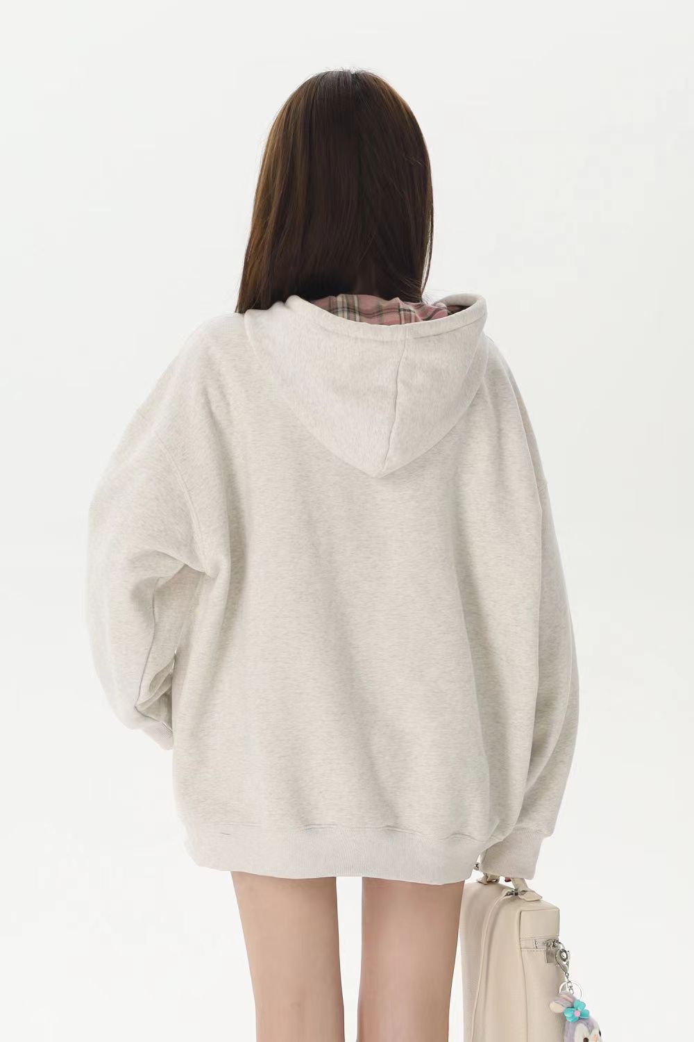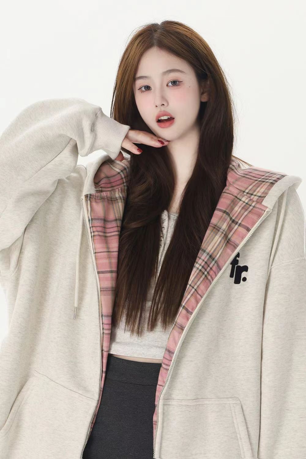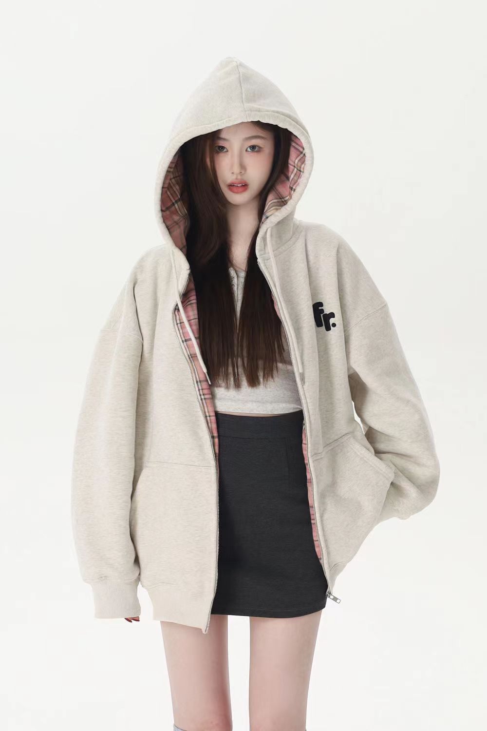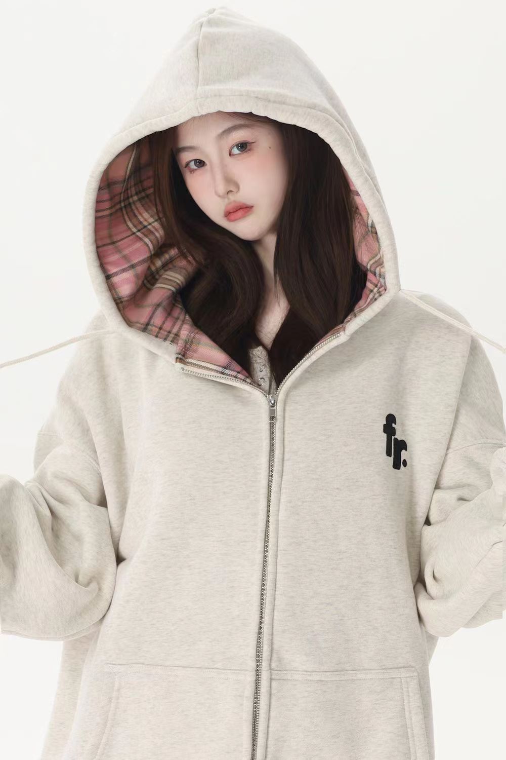 (CVC 코튼 컴포지트 320g) 스티칭 플라이어 후드 조끼 여성용 봄, 가을, 겨울 긴 소매 코트스토어 가기