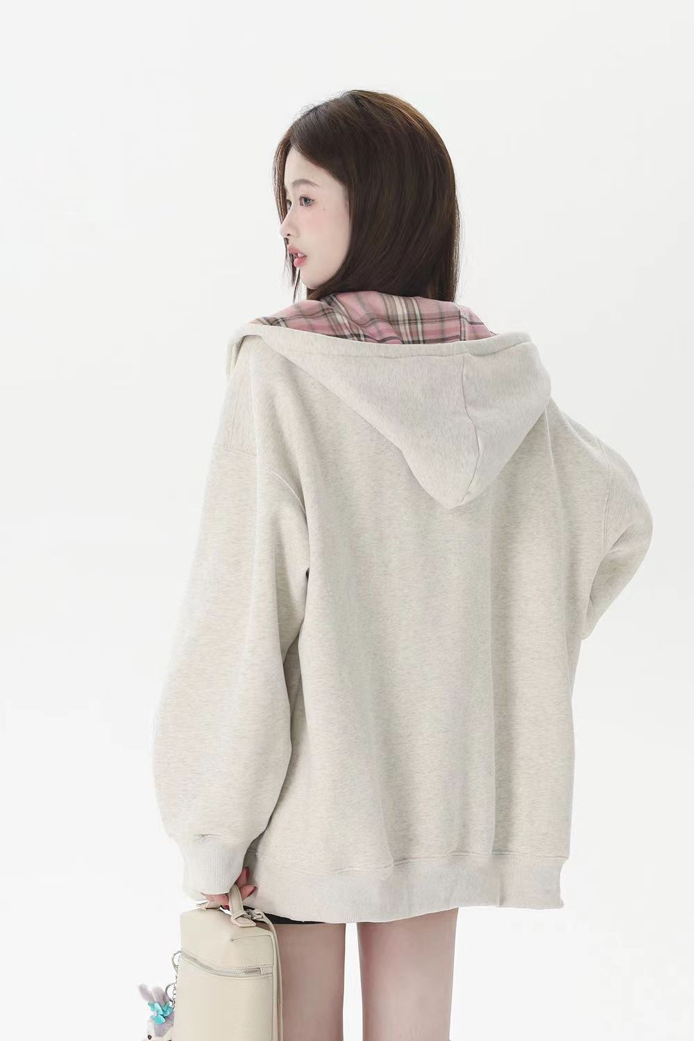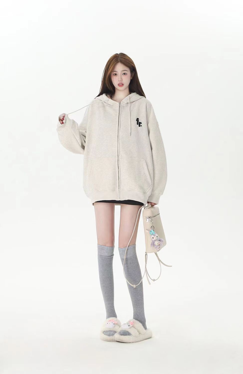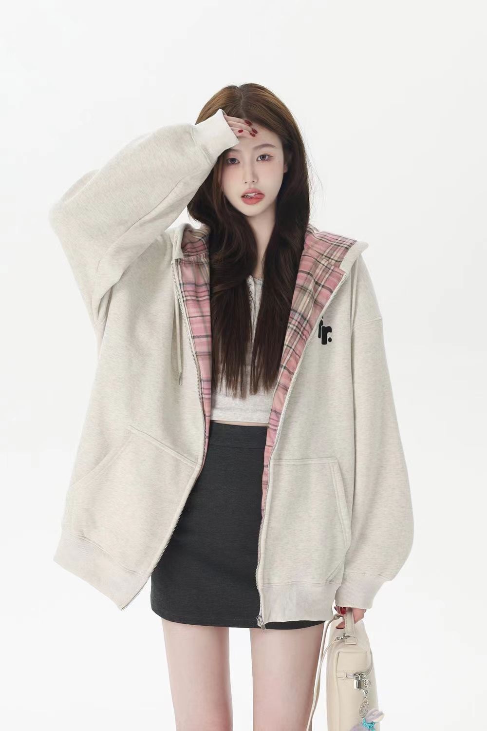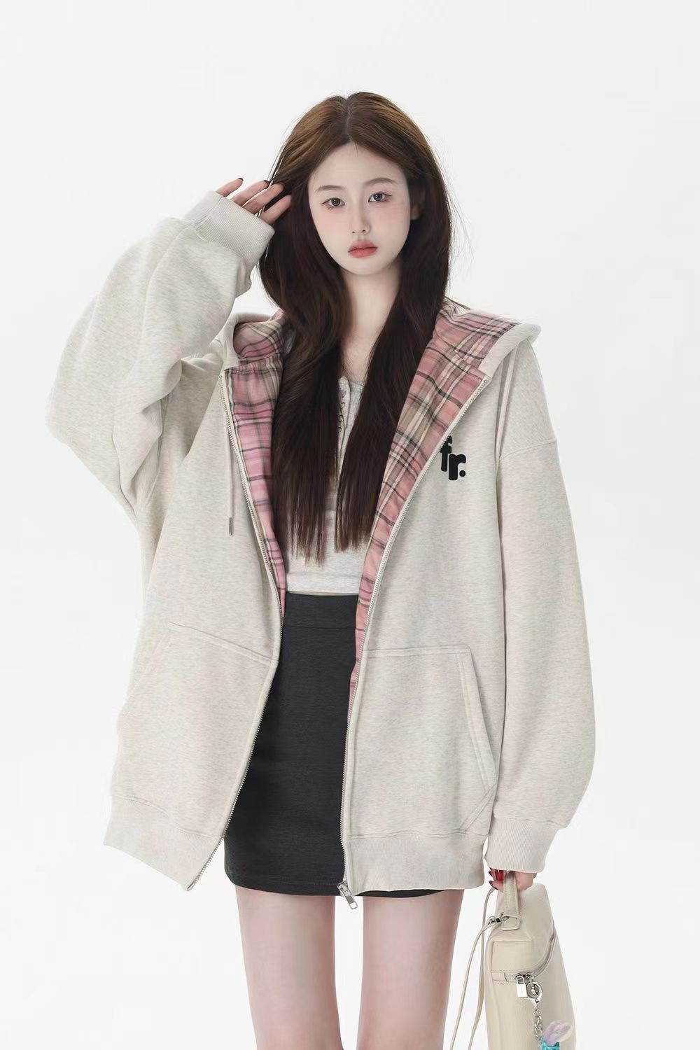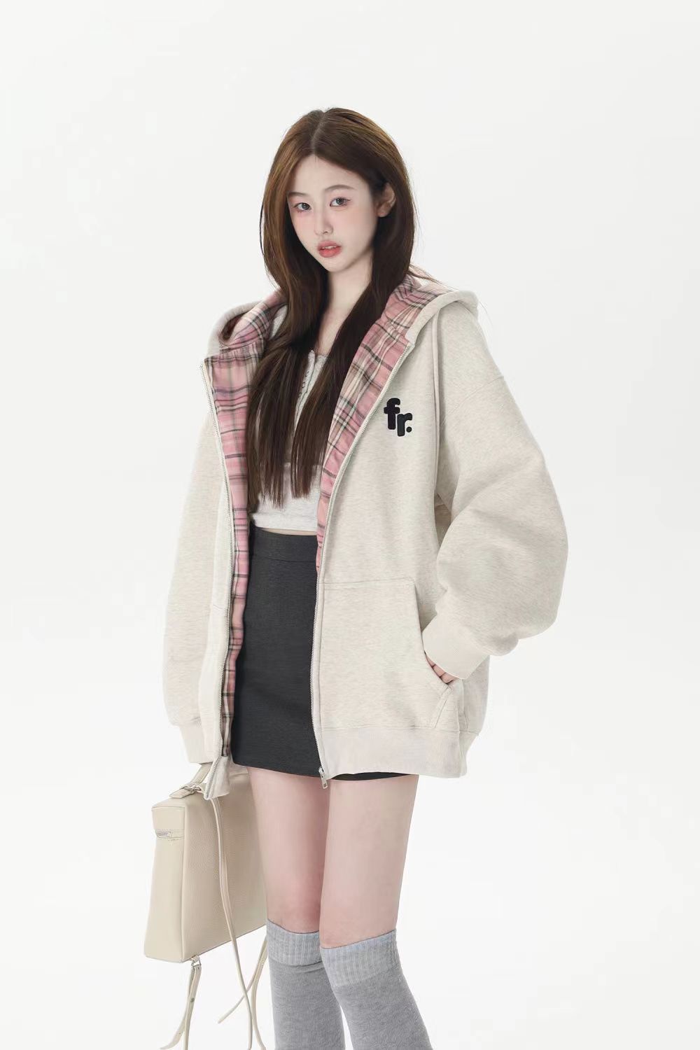 (CVC 코튼 컴포지트 320g) 스티칭 플라이어 후드 조끼 여성용 봄, 가을, 겨울 긴 소매 코트스토어 가기