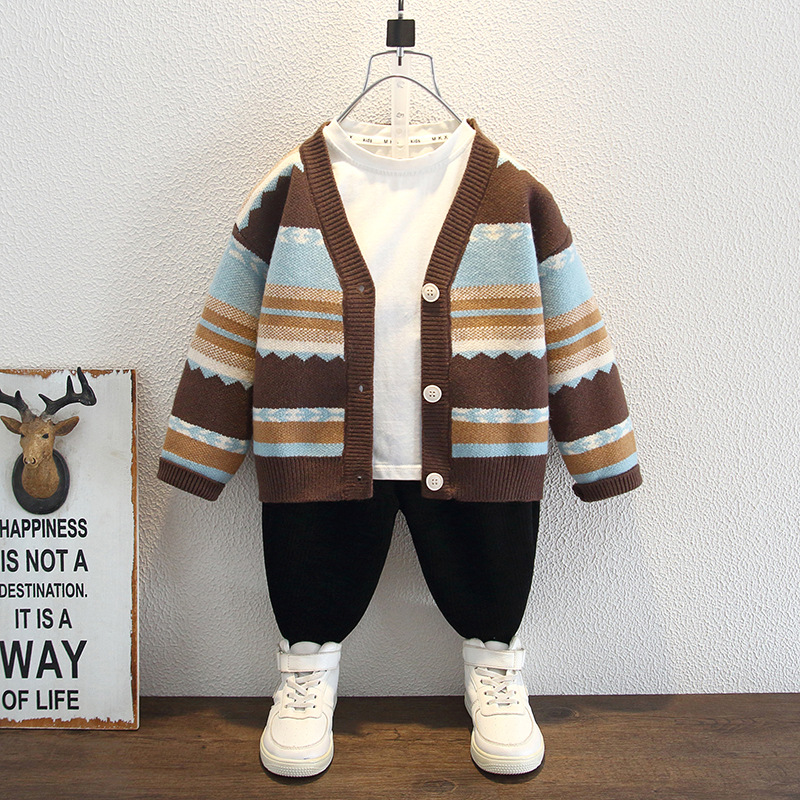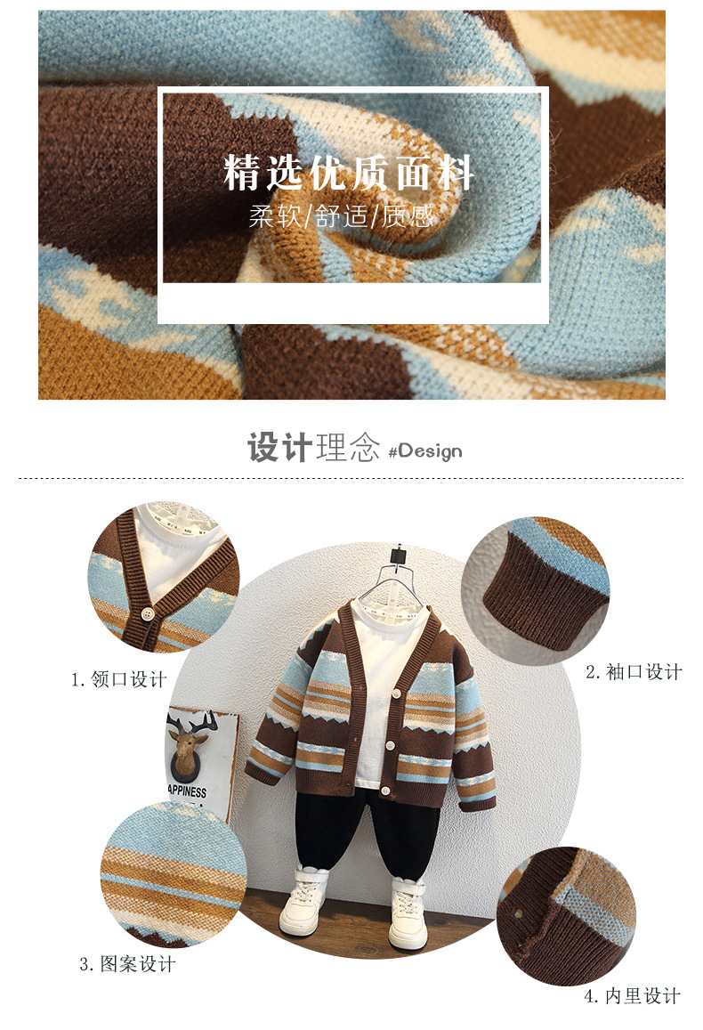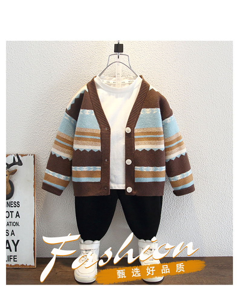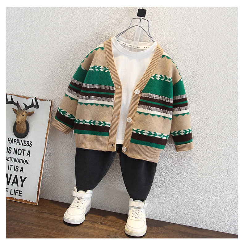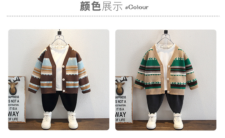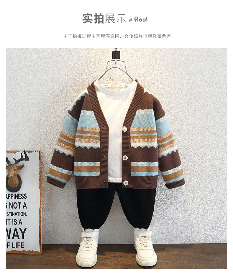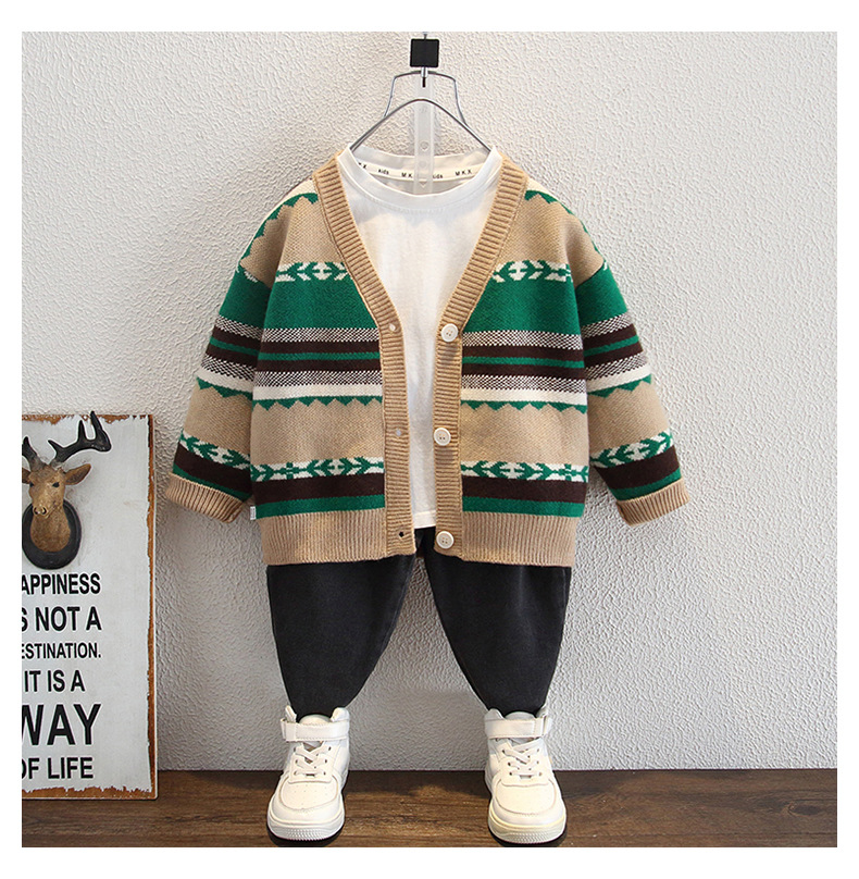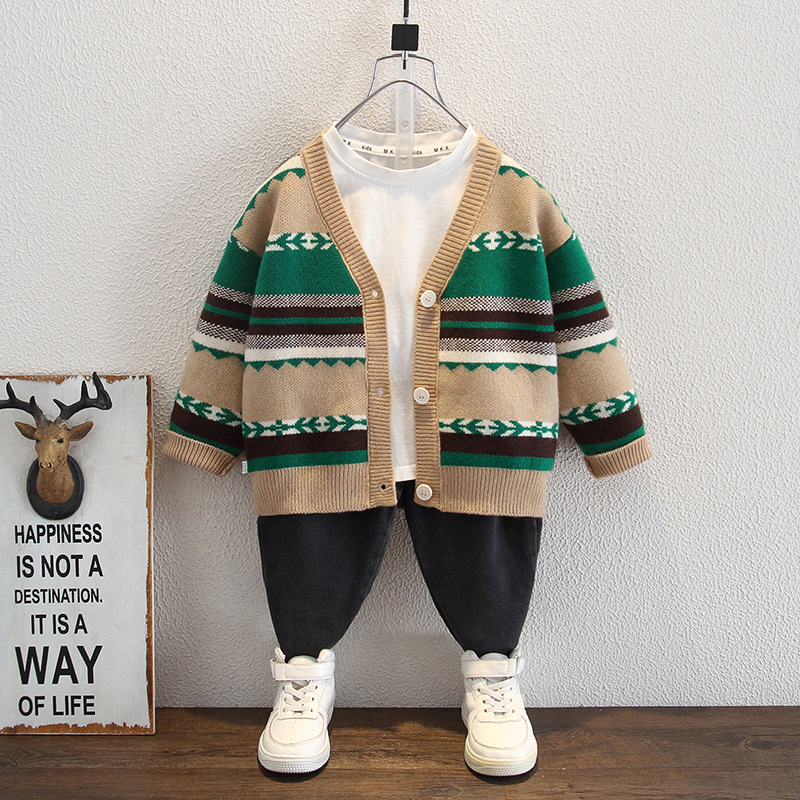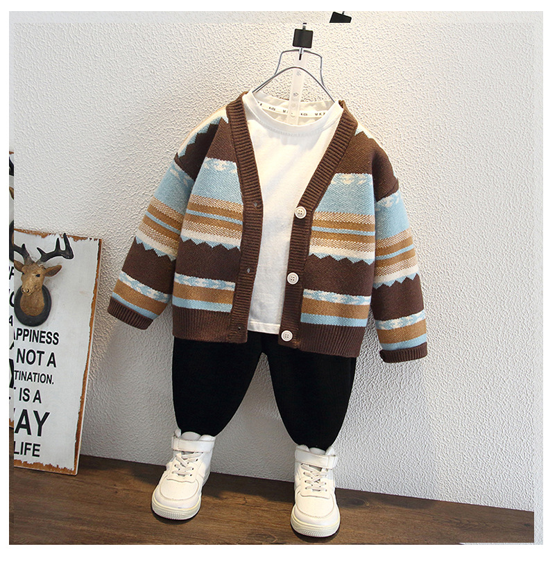 소년의 봄과 가을 니트웨어 2024 새로운 도착 소년의 세련된 서양식 컬러 매칭 카디건 스웨터 어린이 가을 스웨터스토어 가기