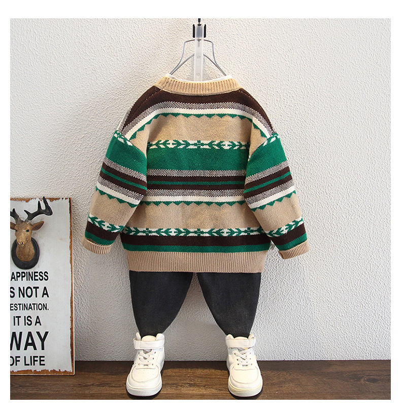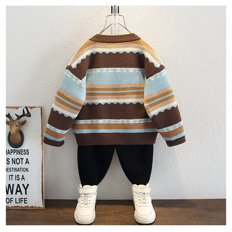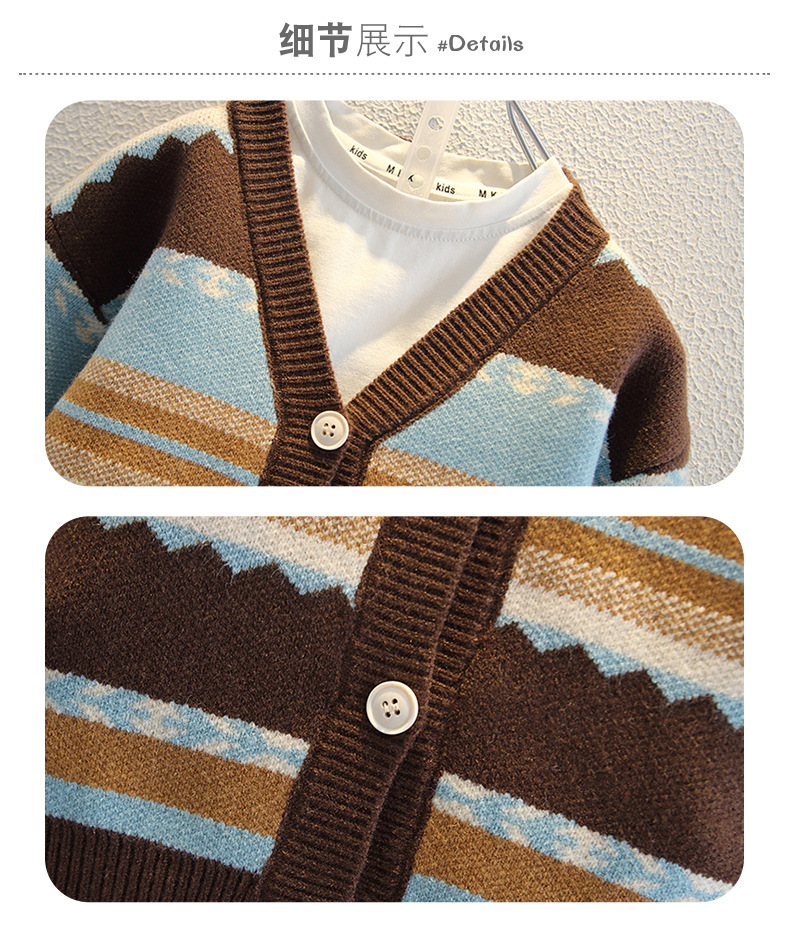 소년의 봄과 가을 니트웨어 2024 새로운 도착 소년의 세련된 서양식 컬러 매칭 카디건 스웨터 어린이 가을 스웨터