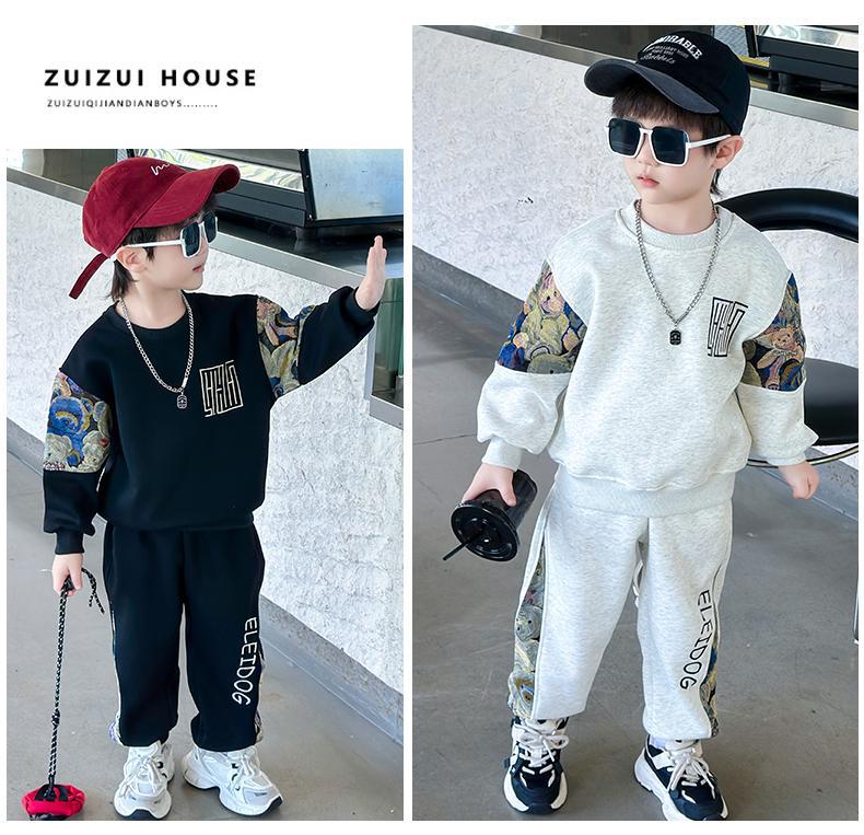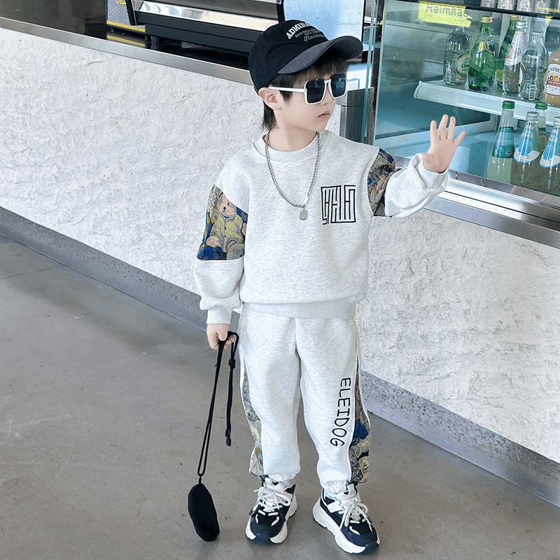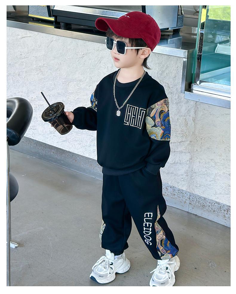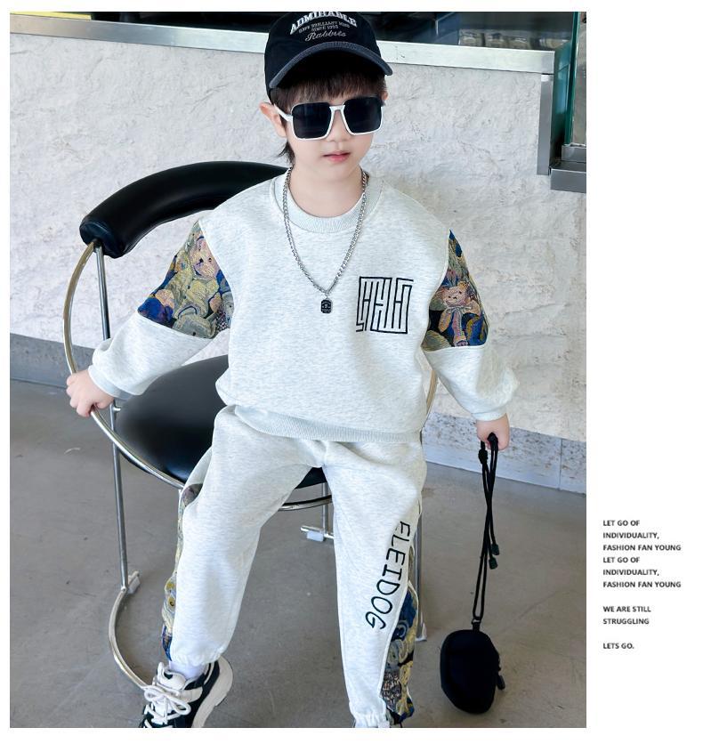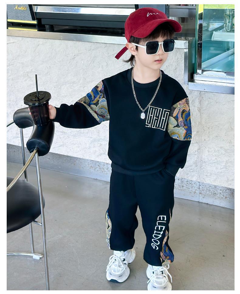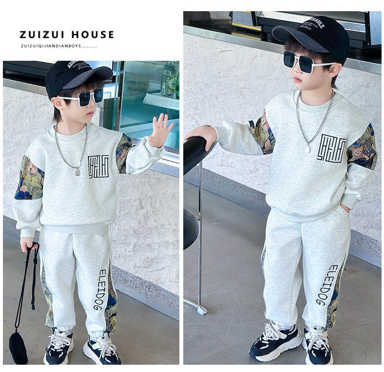 남자와 여자 봄 세트 2024 새로운 멋진 잘 생긴 아이들의 운동복 소년 유행 스웨터 투피스 패션스토어 가기
