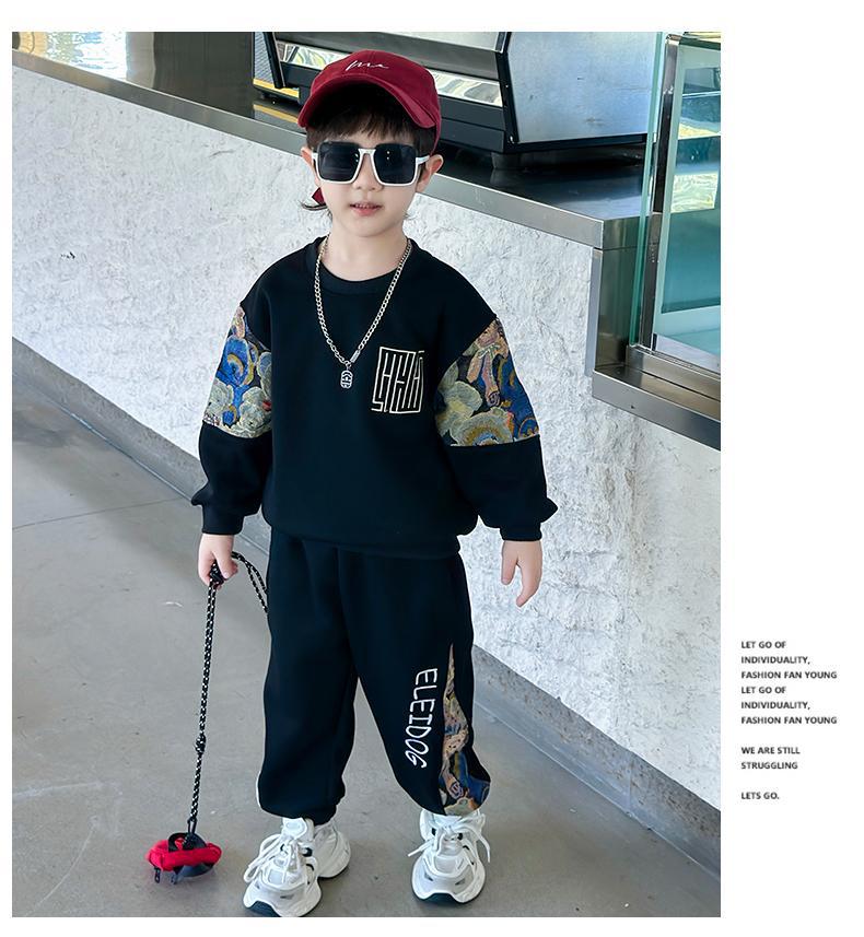 남자와 여자 봄 세트 2024 새로운 멋진 잘 생긴 아이들의 운동복 소년 유행 스웨터 투피스 패션
