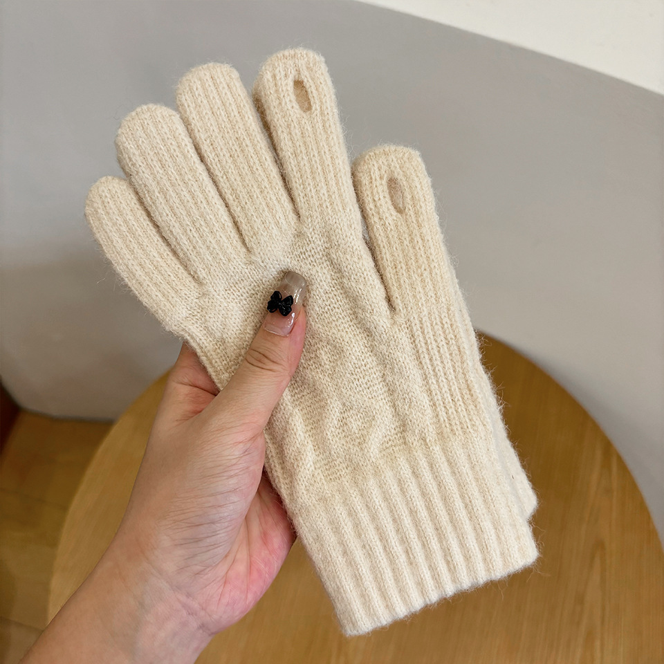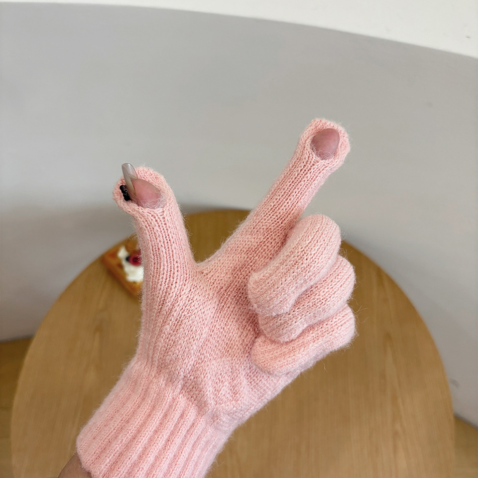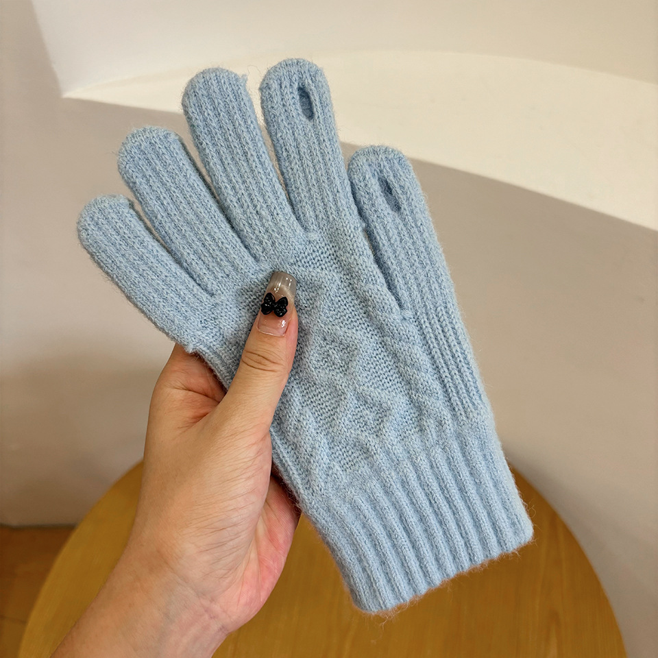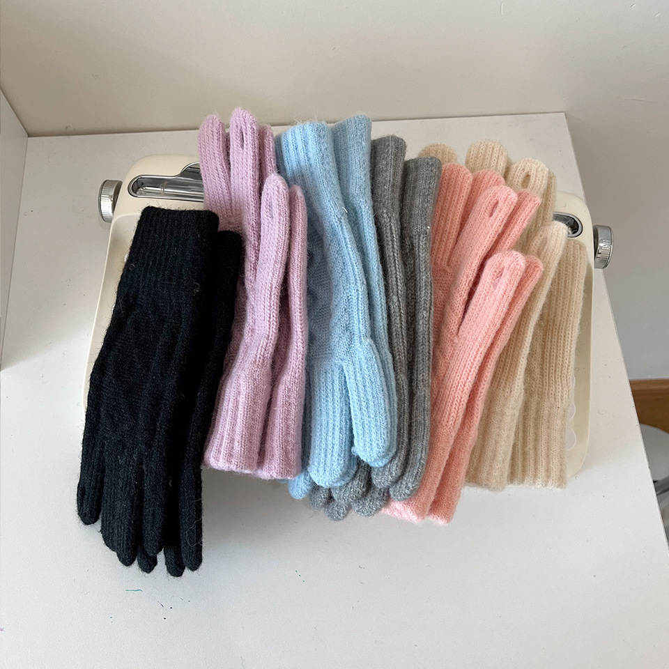 한국식 패션 니트 여성용 따뜻한 장갑 냉장 두꺼운 투손가락 터치 스크린 가을과 겨울에 사이클링 다섯 손가락 장갑스토어 가기
