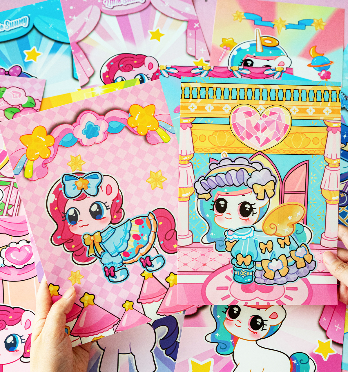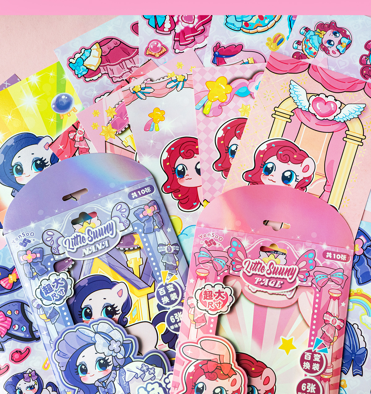 만화 조랑말 창조적 인 원피스 업 스티커 세트 어린이 수제 종이 장난감을 절단 금형 컷 프리 공주 가리 하트스토어 가기