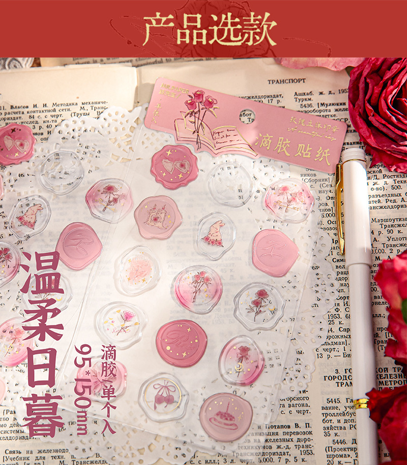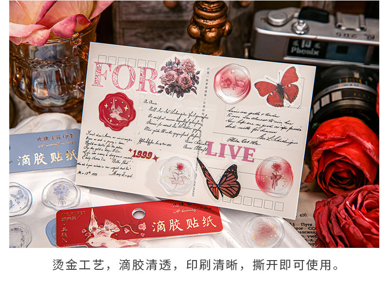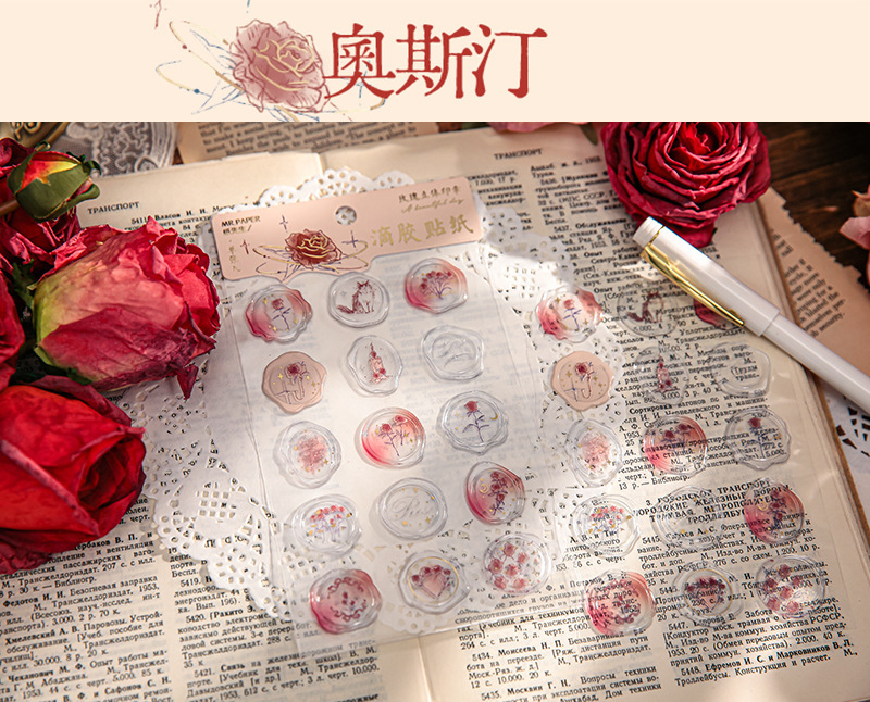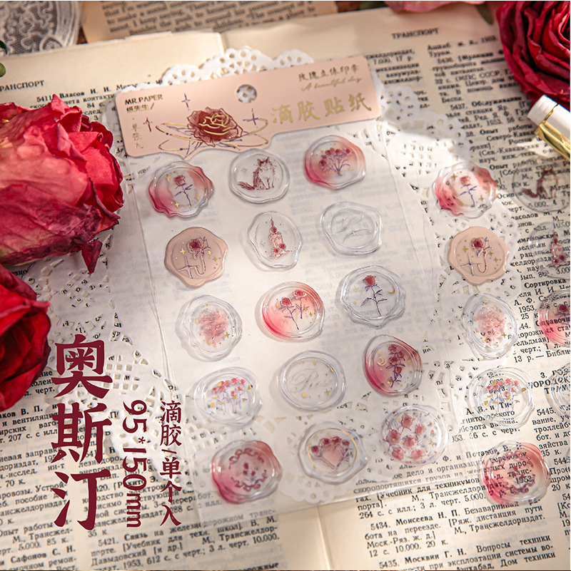 로즈 시리즈 화재 증거 페인트 씰 재료 손 계정 장식 콜라주의 이름에 스티커 미스터 종이 스테레오 접착제 드롭
