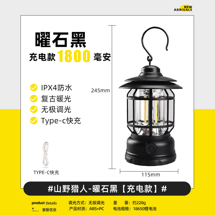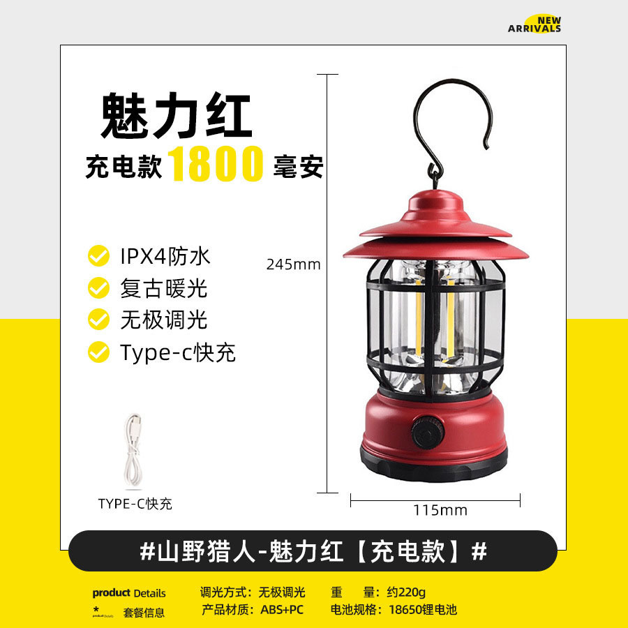크로스 국경 야외 캠핑 라이트 다기능 캠핑 타입-c 충전식 레트로 휴대용 말 램프 방수 텐트 캠핑 라이트