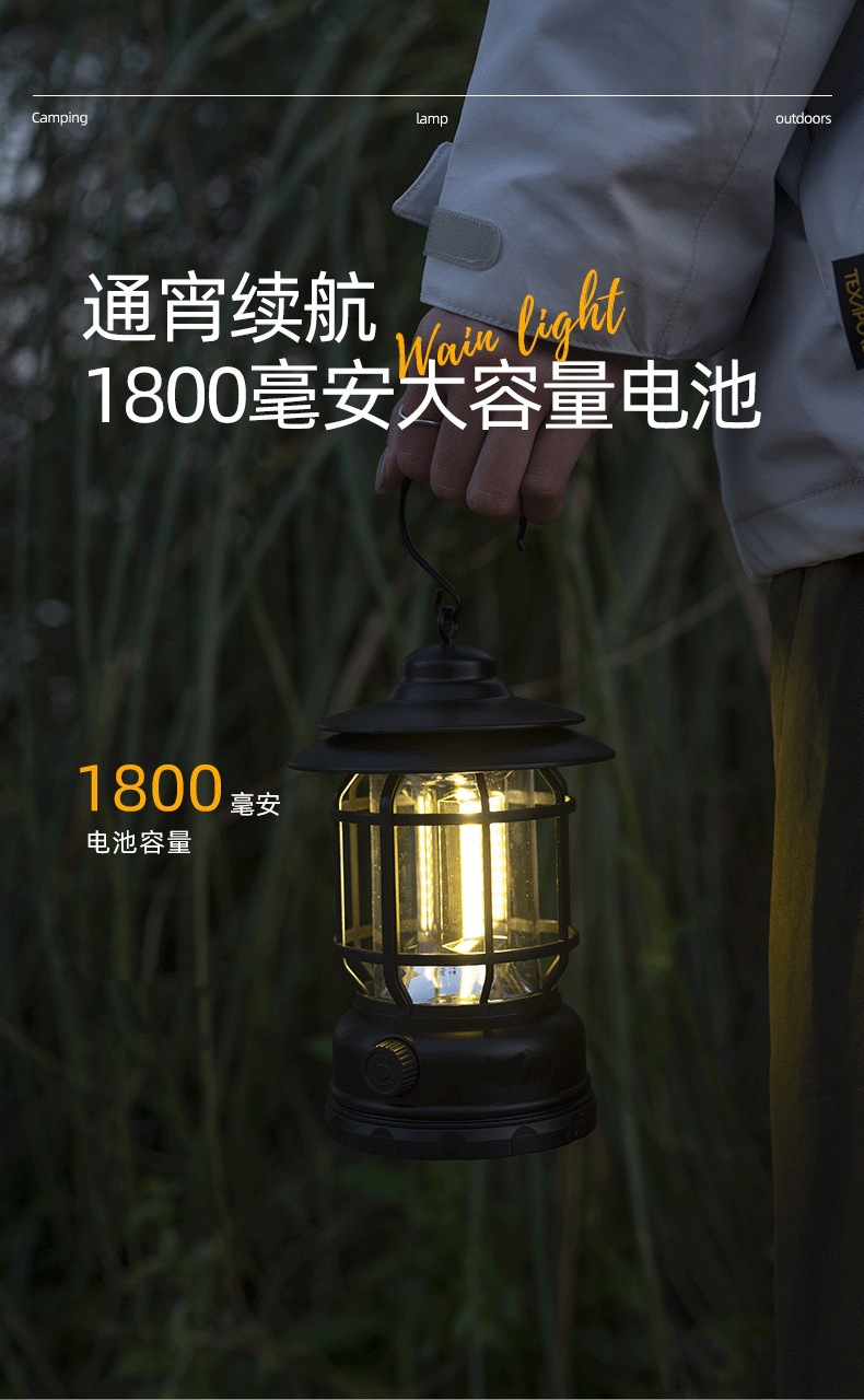 크로스 국경 야외 캠핑 라이트 다기능 캠핑 타입-c 충전식 레트로 휴대용 말 램프 방수 텐트 캠핑 라이트스토어 가기