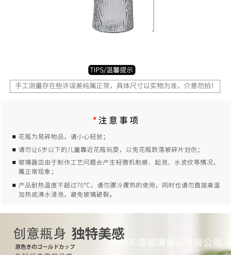 • 20T 튜브 투명 금색 수직 막대 + 나무 껍질