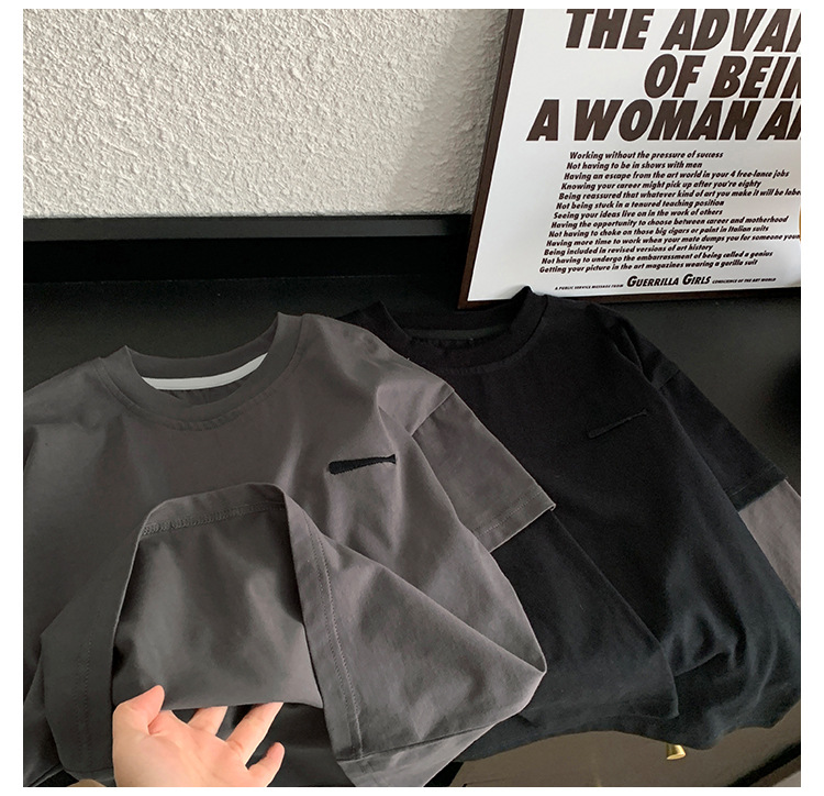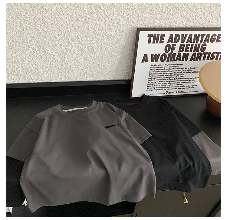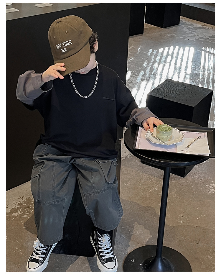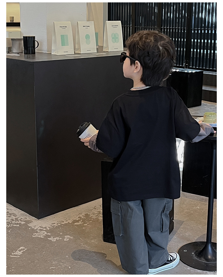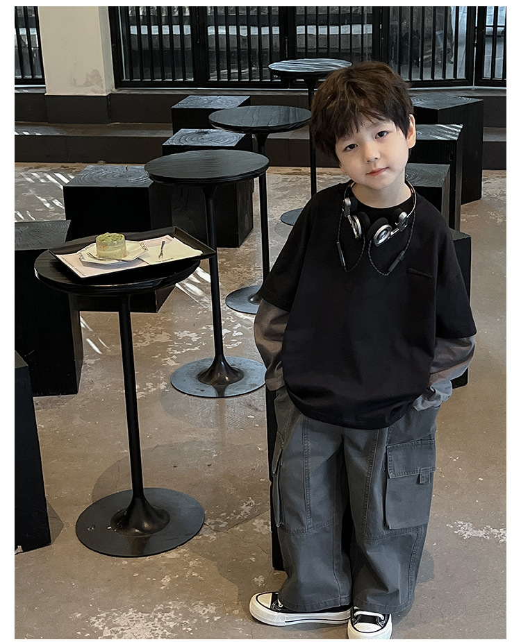 남학생 '2024 새 봄과 가을 긴팔 티셔츠 빅보이 트렌디 브랜드 올매치 느슨한 봄 원피스 어린이 가짜 투피스 탑스토어 가기