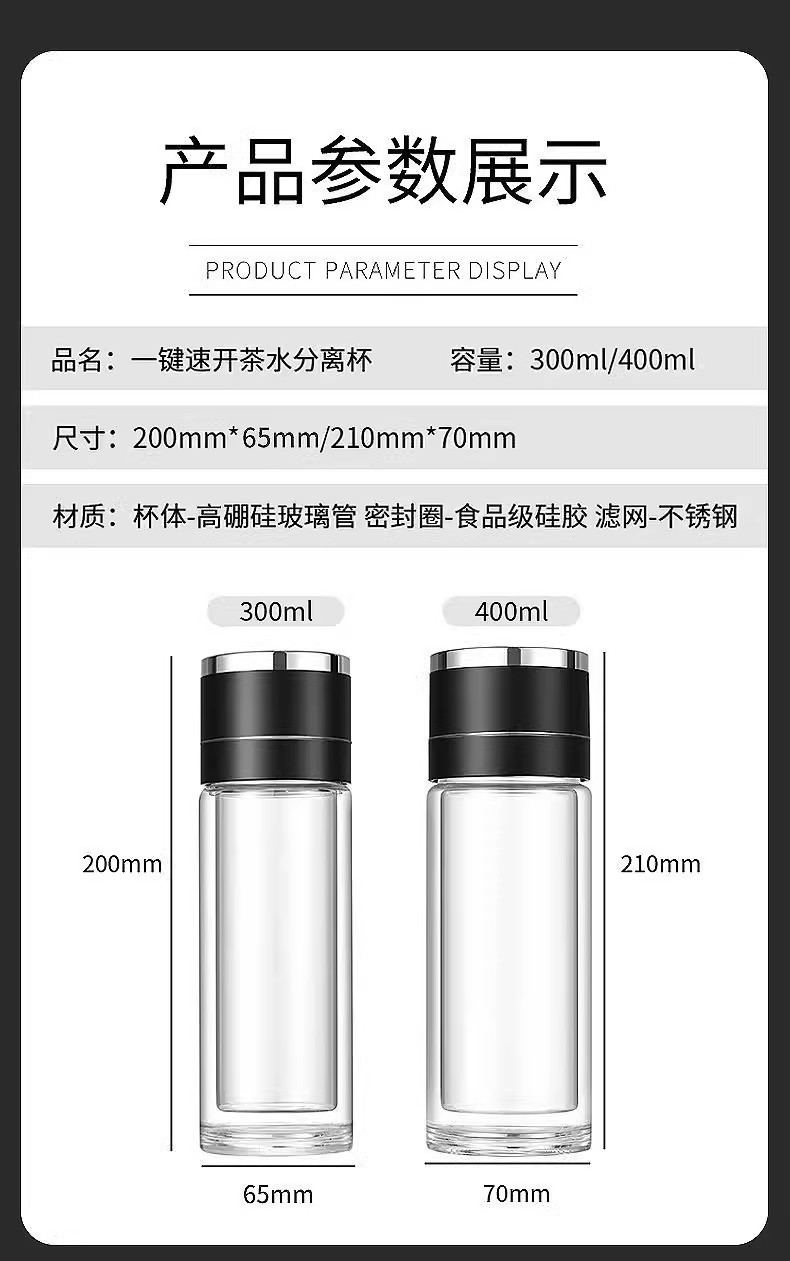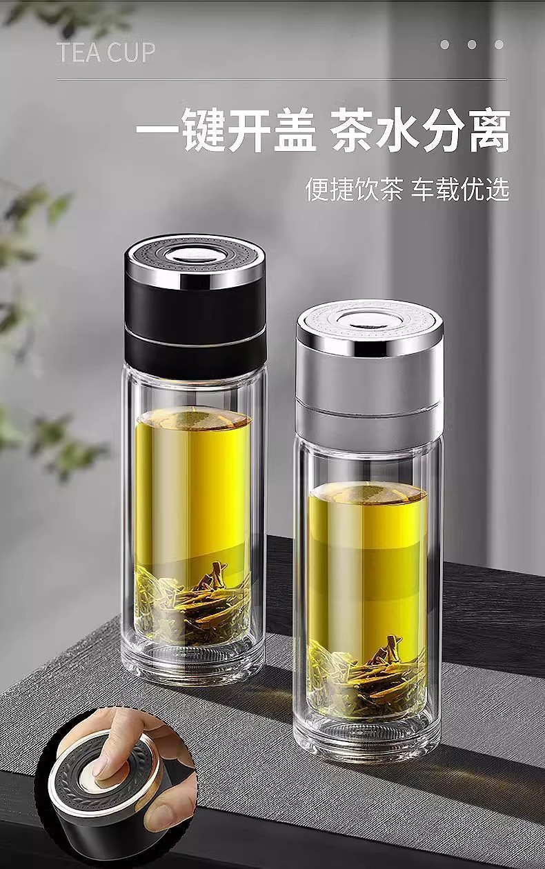자동차 차 분리 컵 남자와 여자의 휴대용 차 컵 싱글 핸드 버클 더블 유리 컵 인쇄 가능