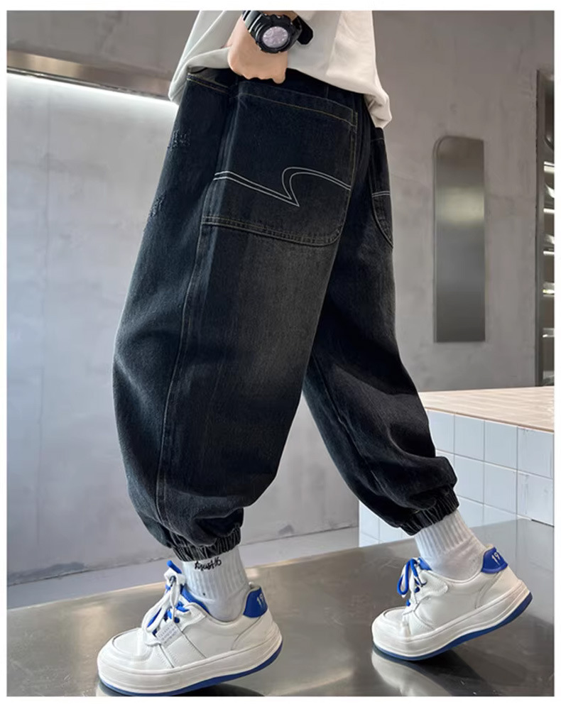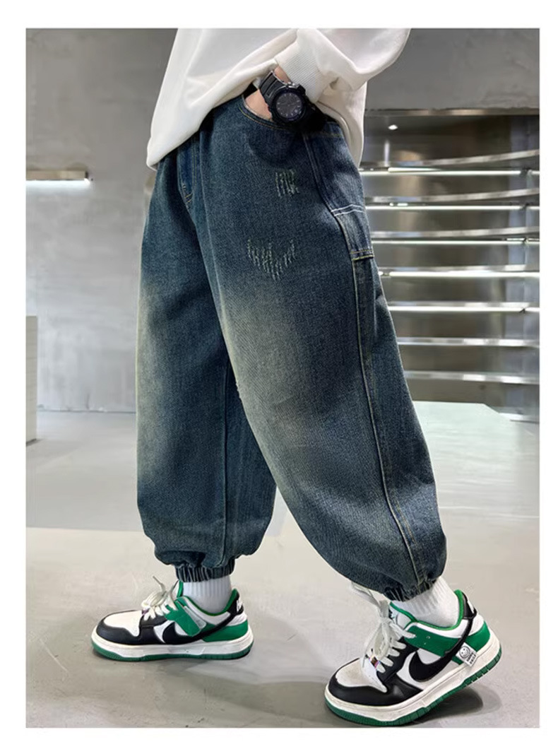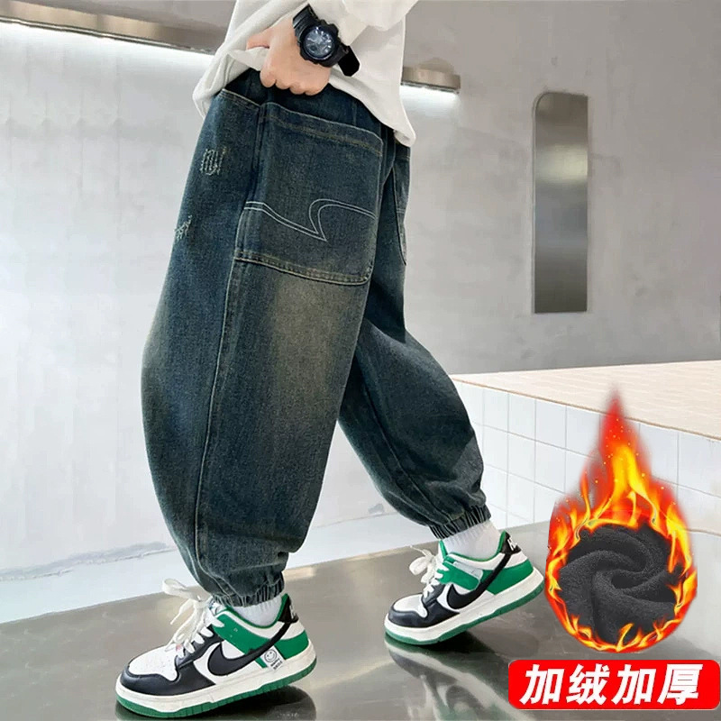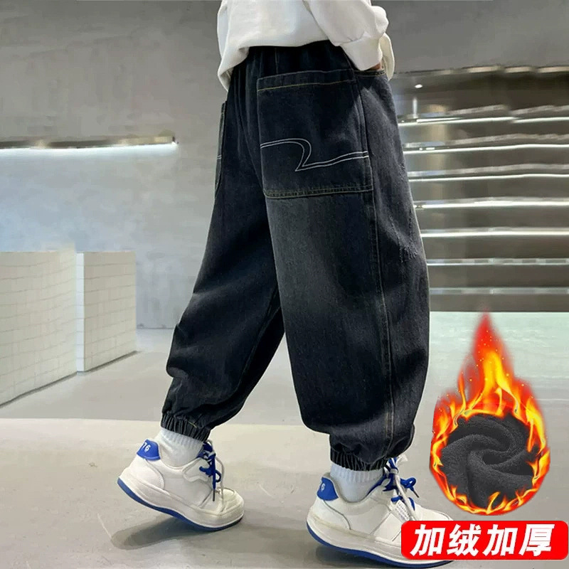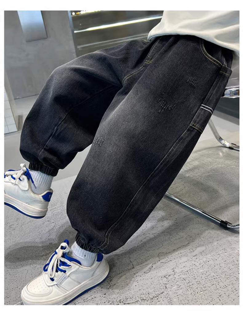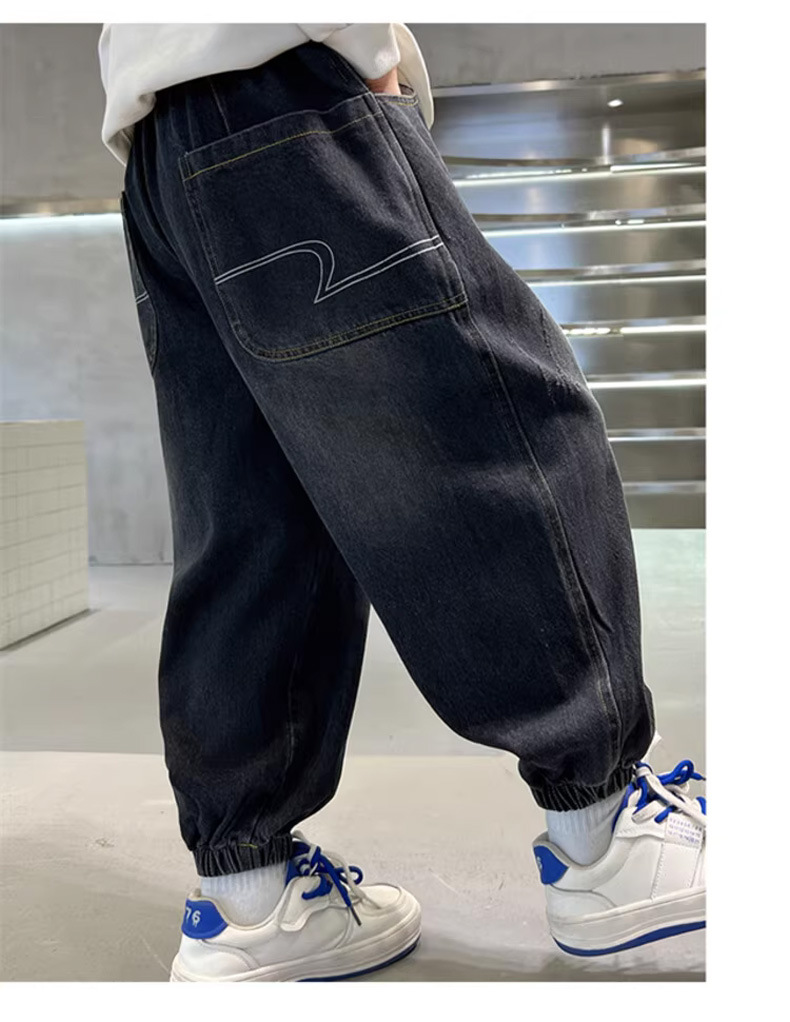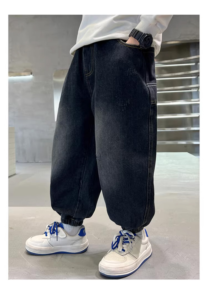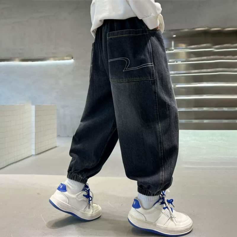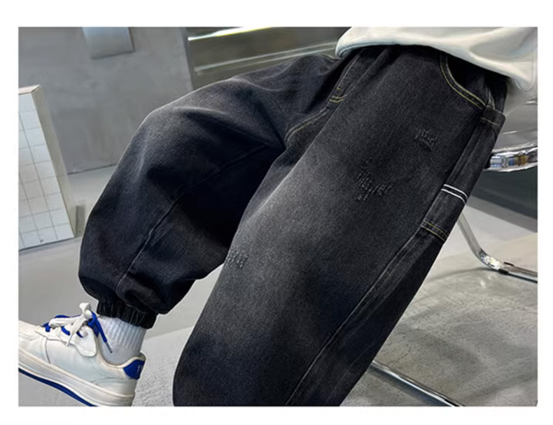 남아 청바지 2026 캐주얼 뚱뚱한 아이들을 위한 바지 한국 스타일 가을 의류 중대형 아동 스포츠 스트레이트 롱 팬츠 가을 겨울 트렌디 바지스토어 가기