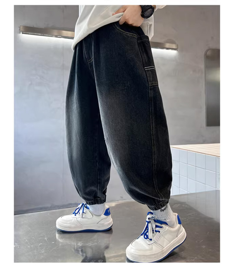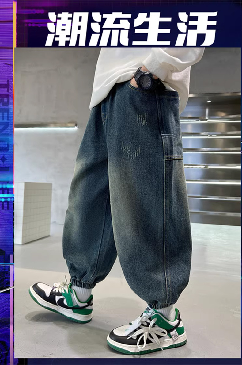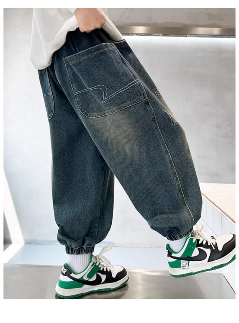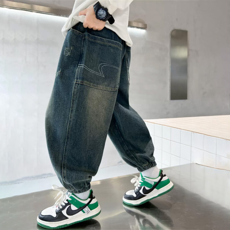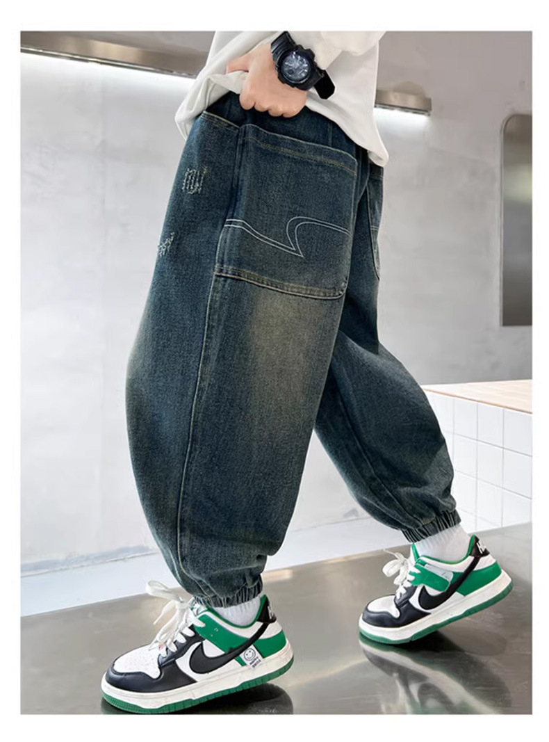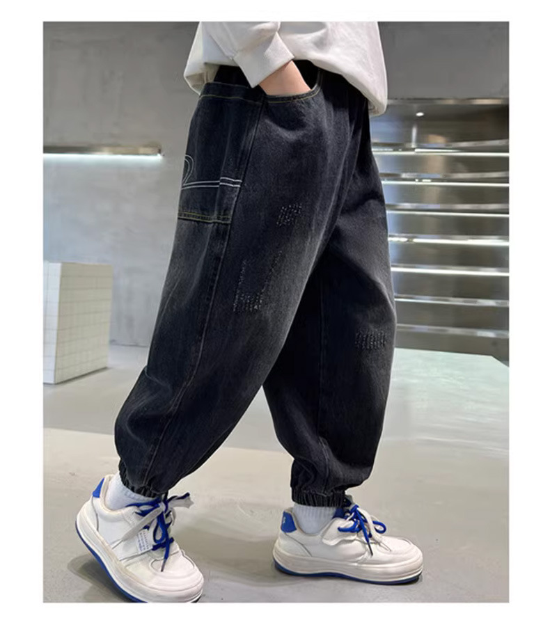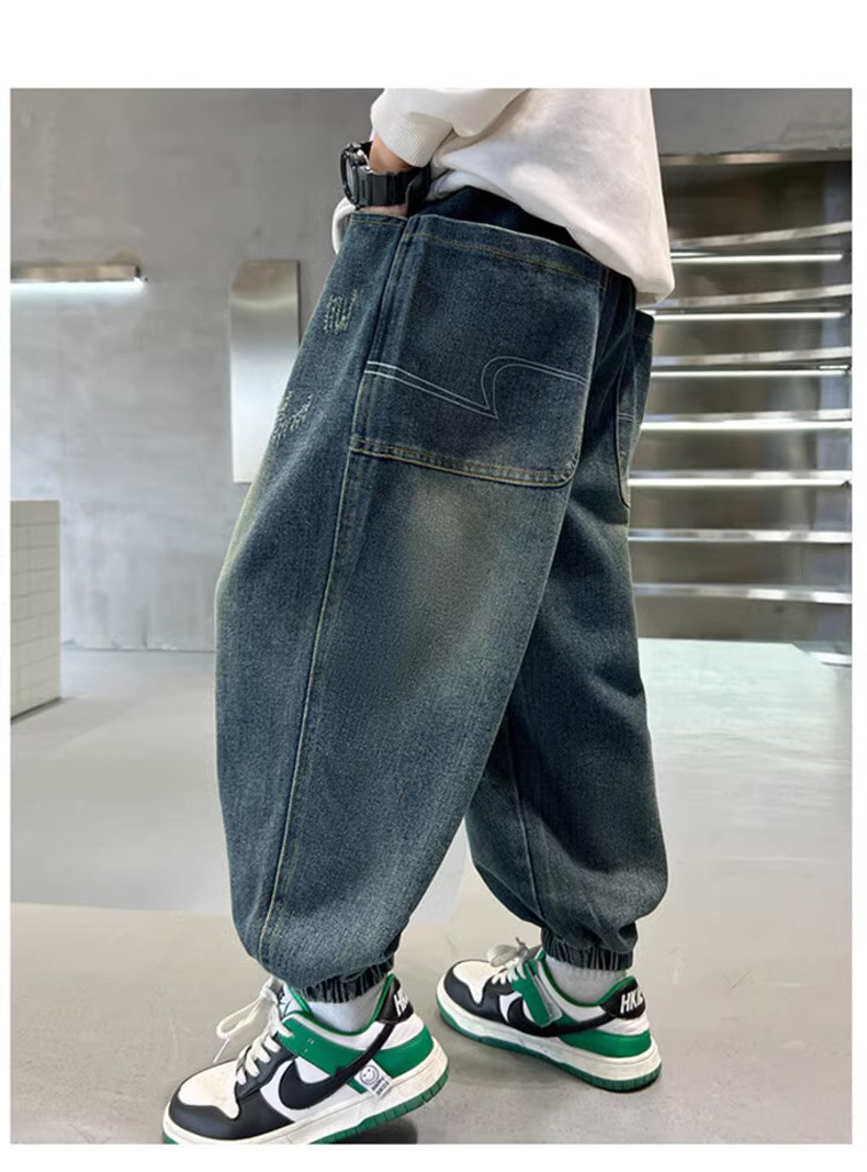 남아 청바지 2026 캐주얼 뚱뚱한 아이들을 위한 바지 한국 스타일 가을 의류 중대형 아동 스포츠 스트레이트 롱 팬츠 가을 겨울 트렌디 바지스토어 가기