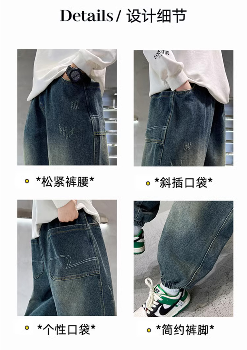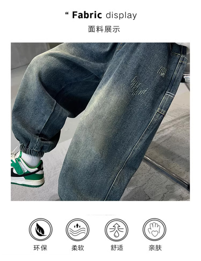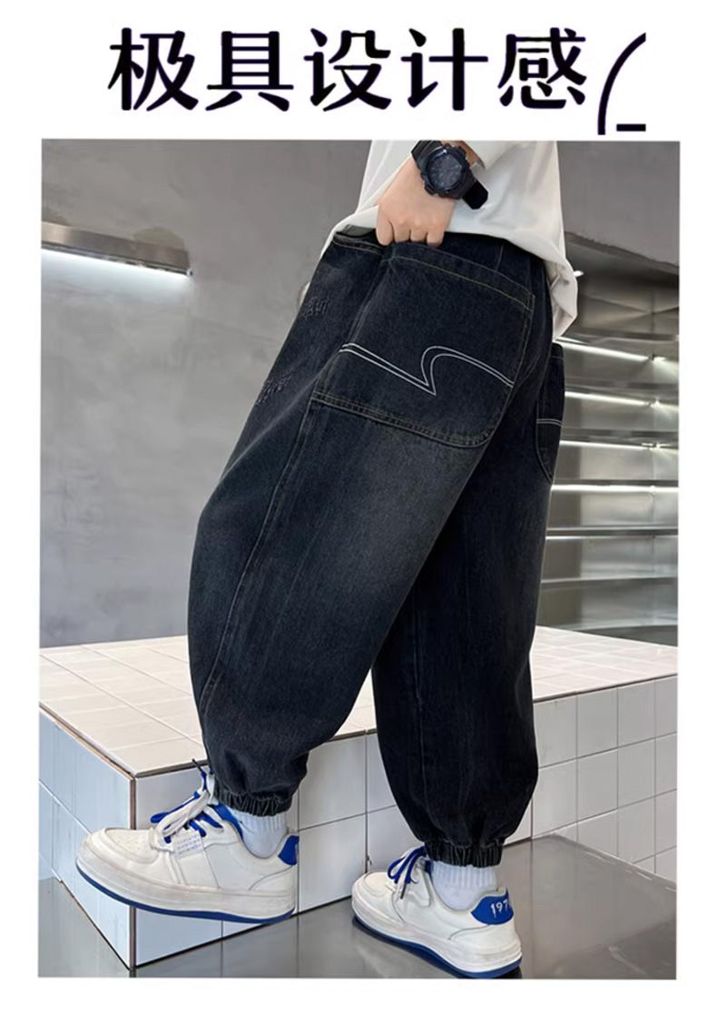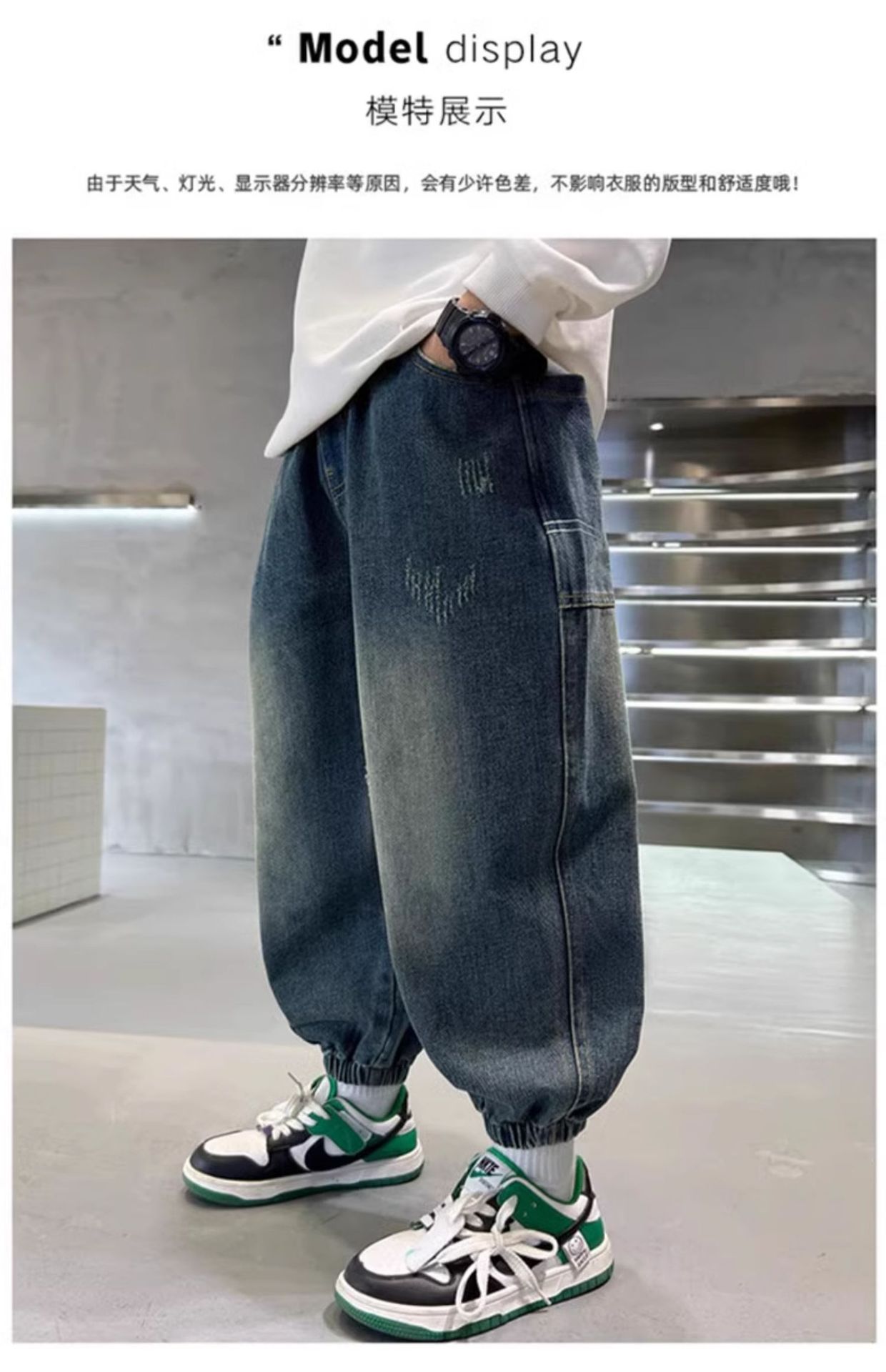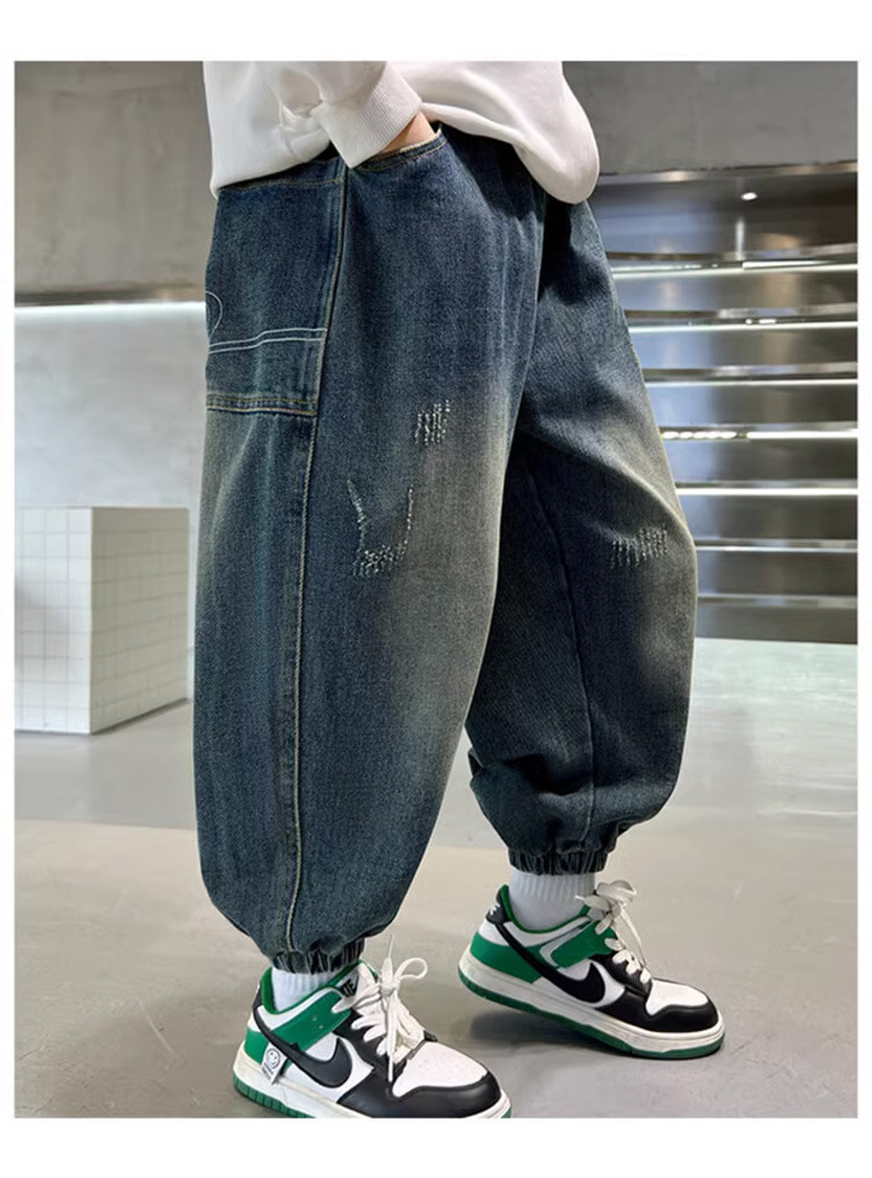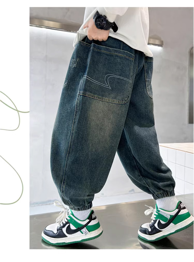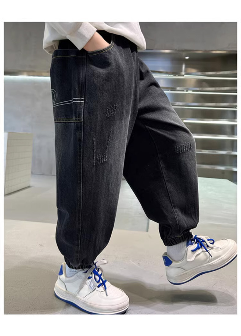 남아 청바지 2026 캐주얼 뚱뚱한 아이들을 위한 바지 한국 스타일 가을 의류 중대형 아동 스포츠 스트레이트 롱 팬츠 가을 겨울 트렌디 바지스토어 가기