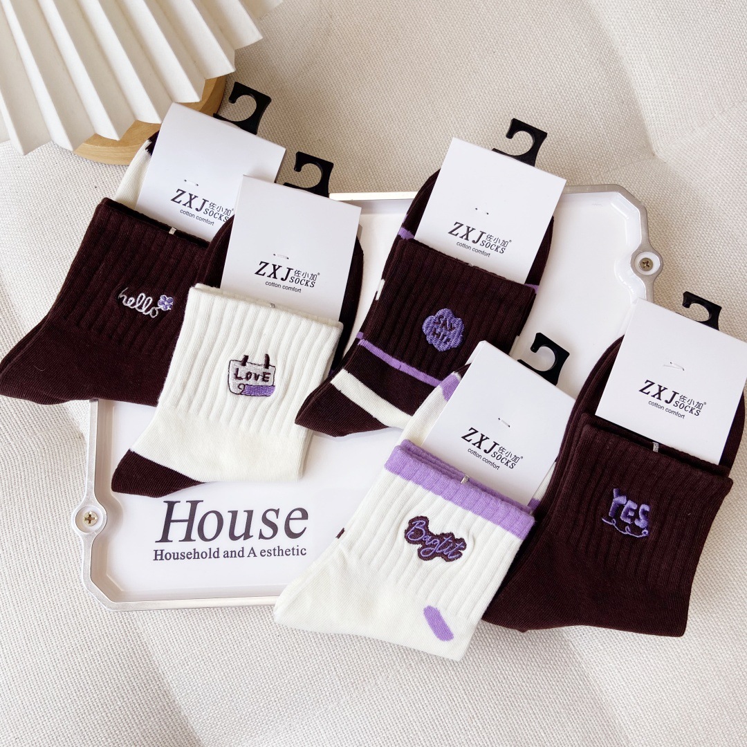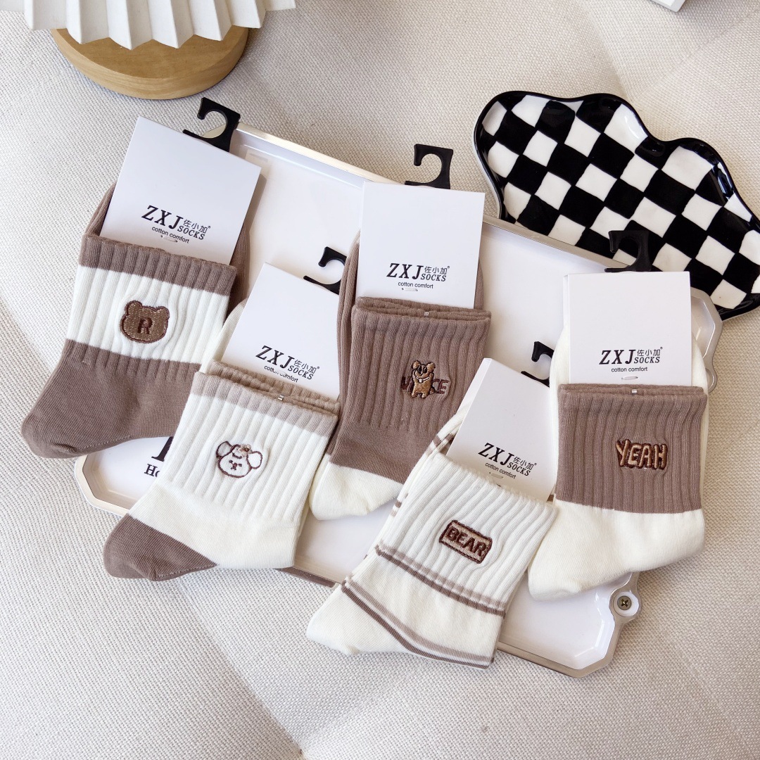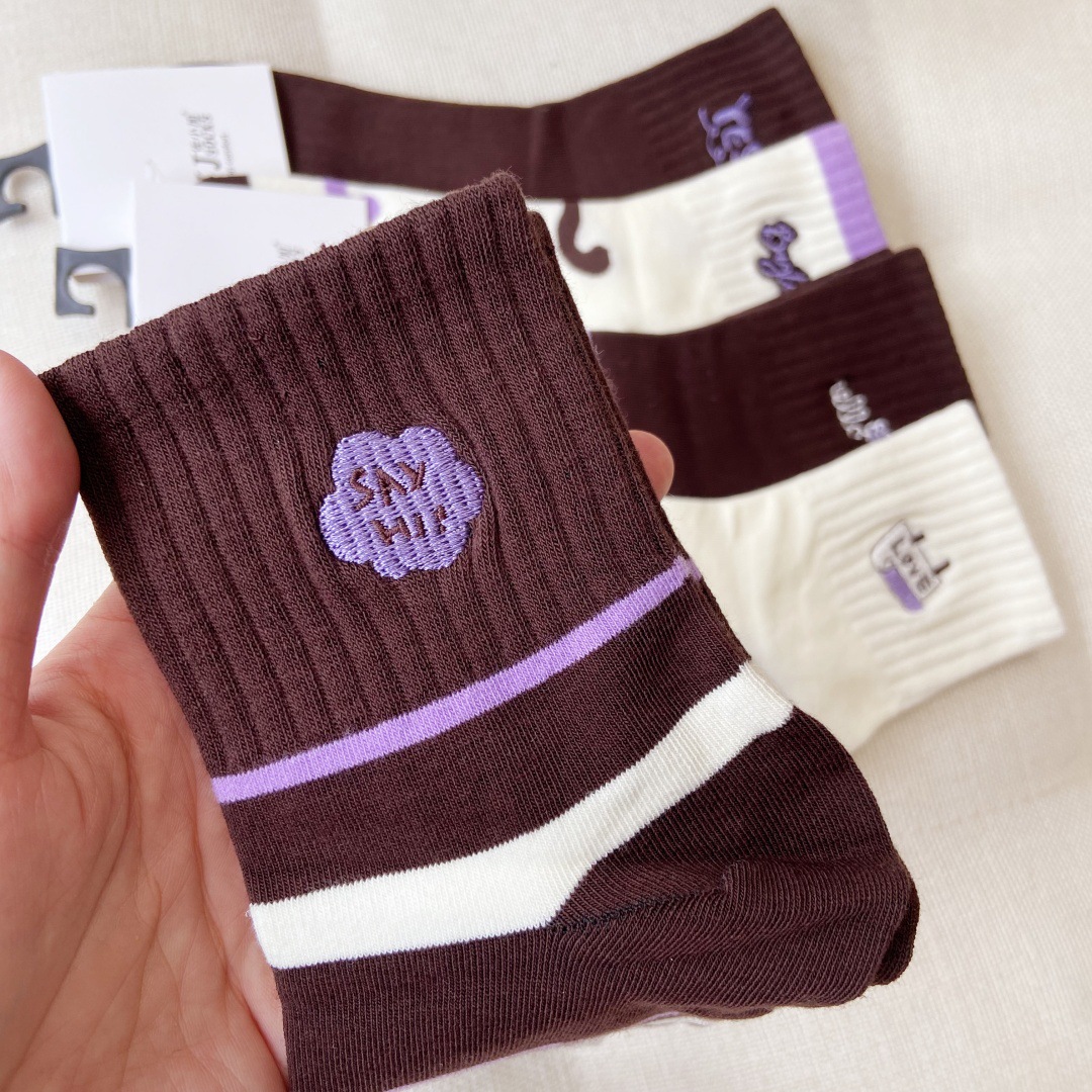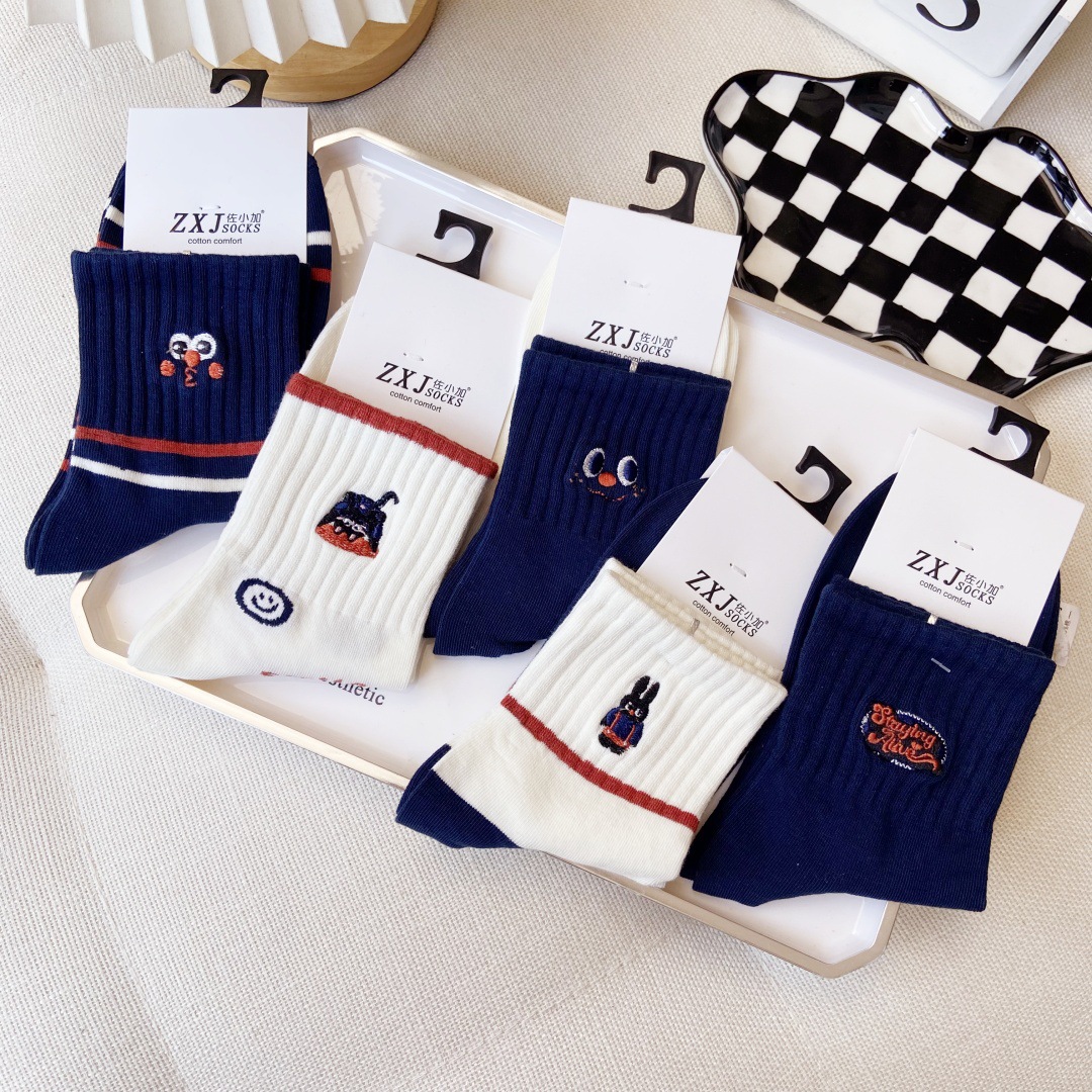 교수형 버전 만화 양말 어린이 양말면 양말 가을과 겨울 땀 흡수성 통기성 빗질 코튼 스포츠 여성 양말 자수 조수 양말