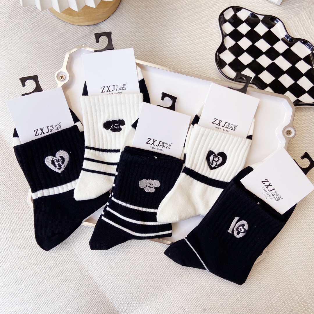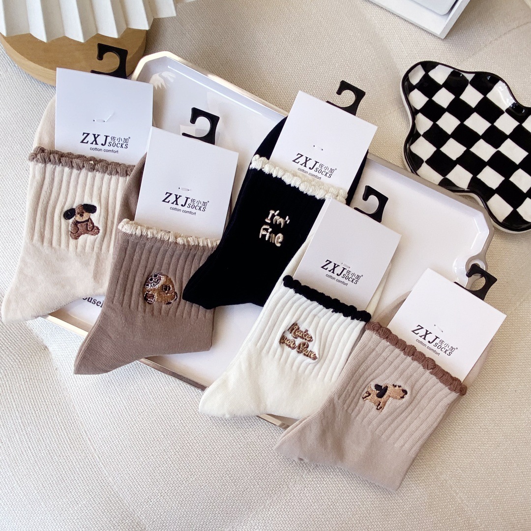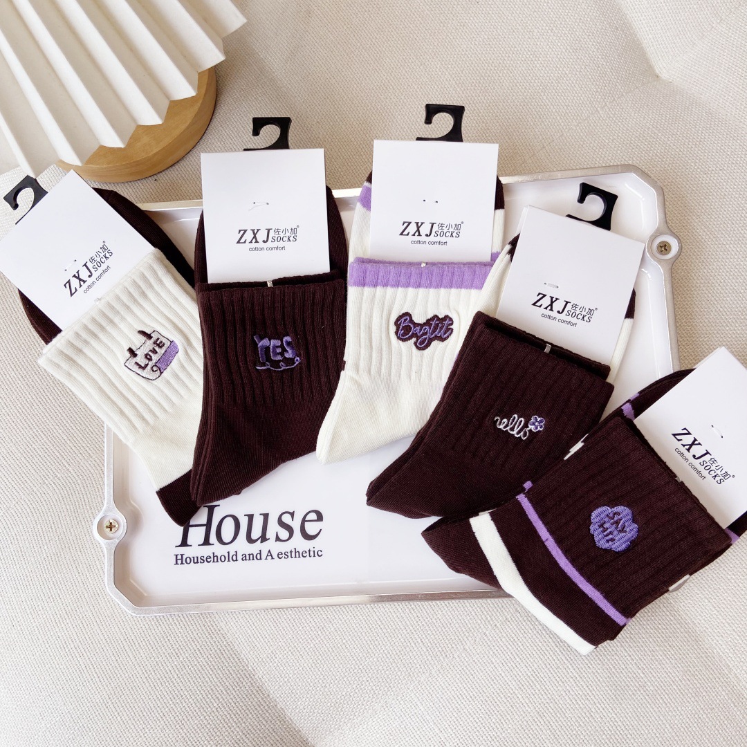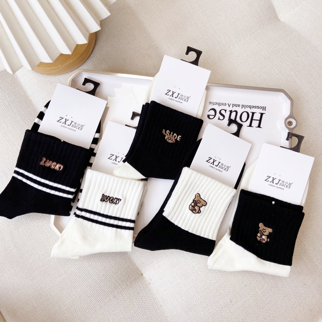 교수형 버전 만화 양말 어린이 양말면 양말 가을과 겨울 땀 흡수성 통기성 빗질 코튼 스포츠 여성 양말 자수 조수 양말