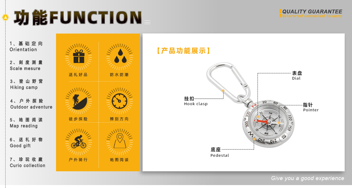 공장 직판 아연 합금 후크 나침반 열쇠고리 야외 등산용 나침반 도매 판매스토어 가기