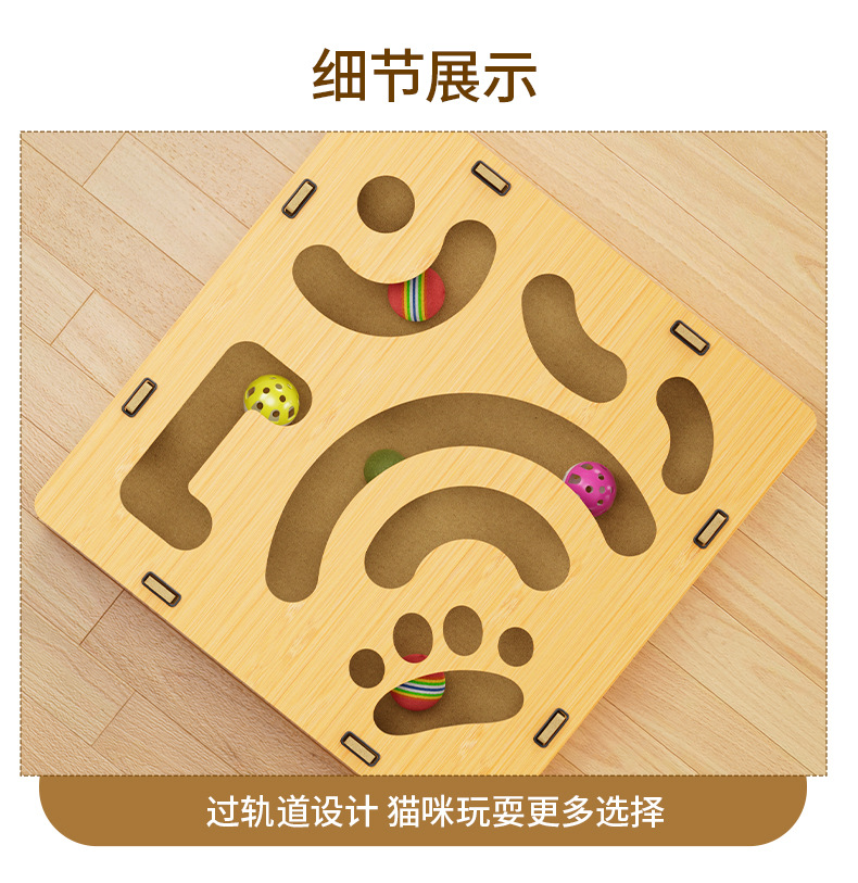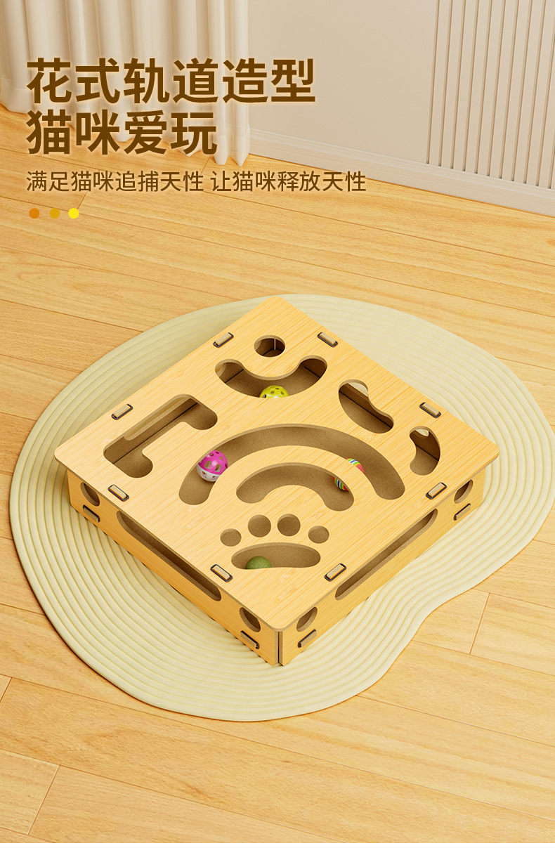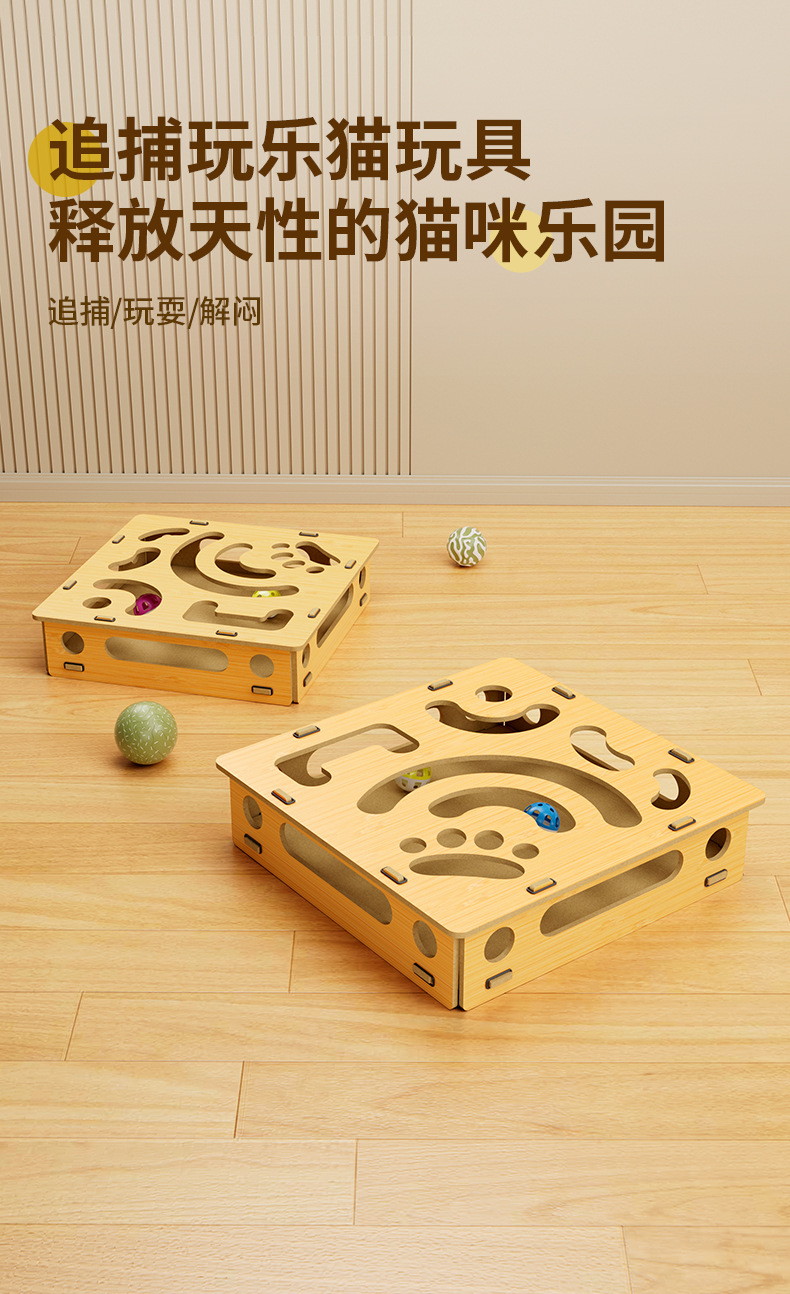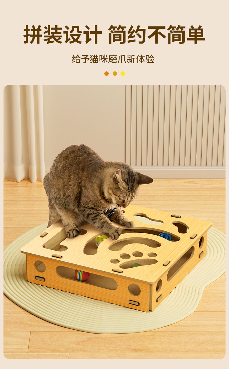 나무 미로 상자 고양이 셀프 하이 장난감 벨 공 고양이 장난감 고양이 파고 구멍 장난감 퍼즐 구호 고양이 턴테이블