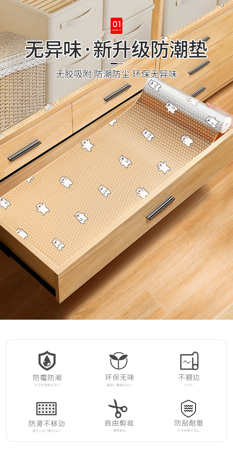 일본 해피 베어 서랍 패드 종이 가정용 캐비닛 패드 방수 카운터 옷장 방진 오일 방수 방습 스티커