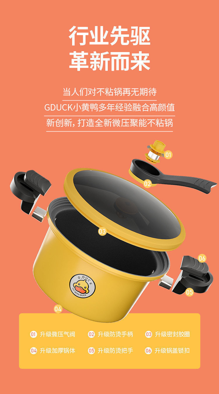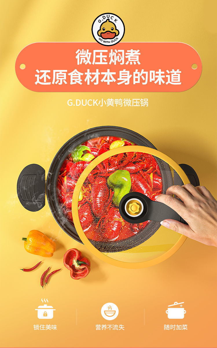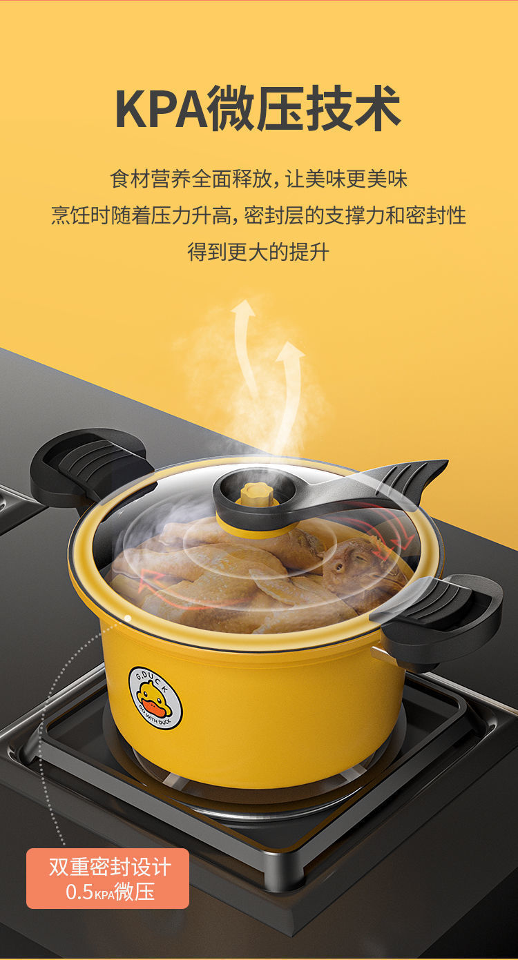 작은 노란색 오리 마이크로 압력 냄비 가정용 다기능 요리 냄비 찐 수프 냄비 새로운 Maifan 스톤 스틱 팬 선물 도매