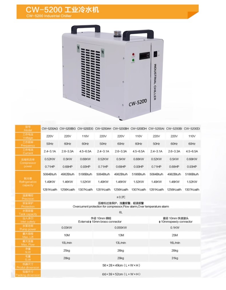 • CW5200 냉각기(단일 입구 및 단일 출구 냉각기)
