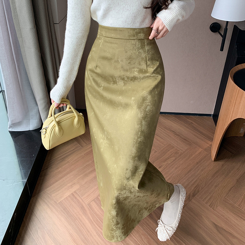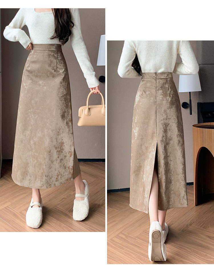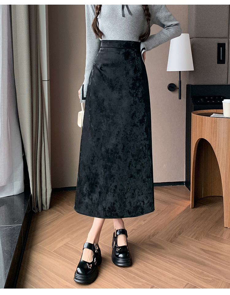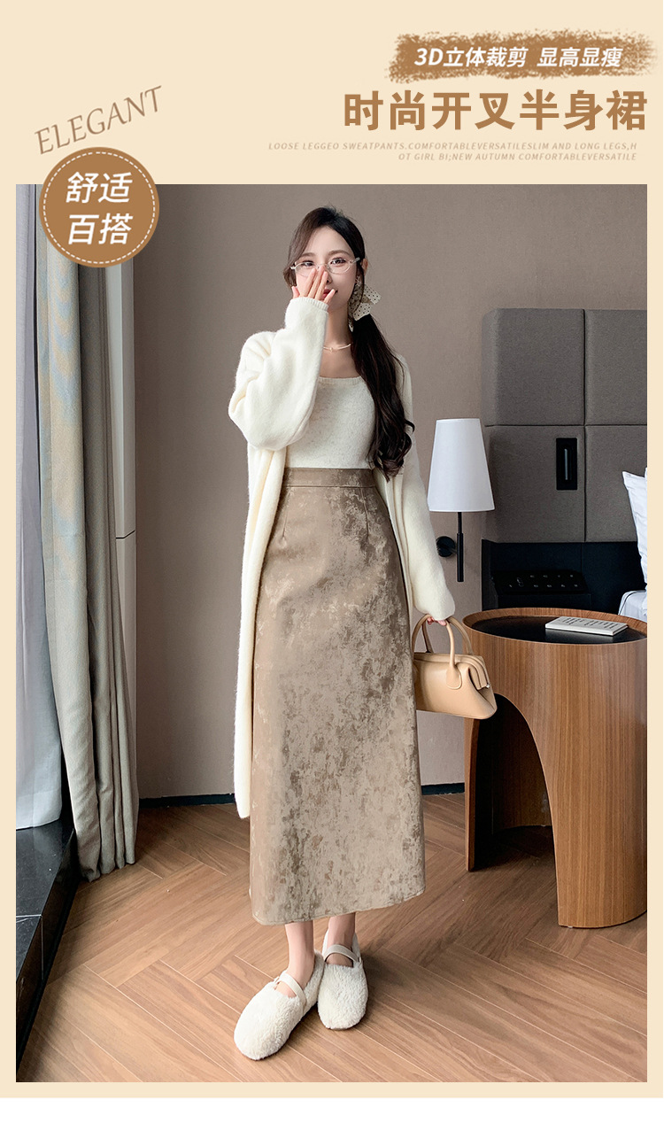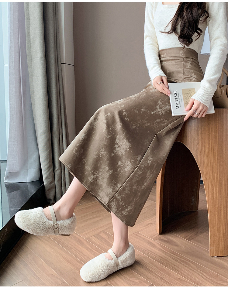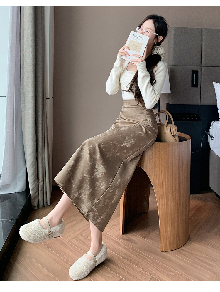 Guofeng 스트레이트 가죽 스커트 여성의 가을과 겨울 새로운 중간 길이 스플릿 스커트 pu 가죽 스커트 슬림 조커 오버 스커트 도매스토어 가기