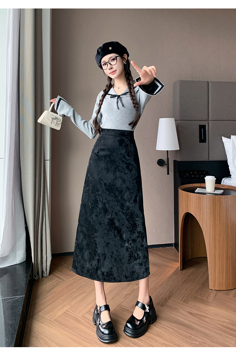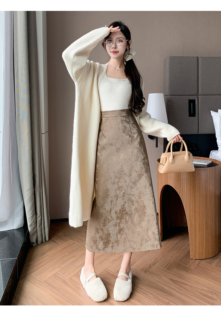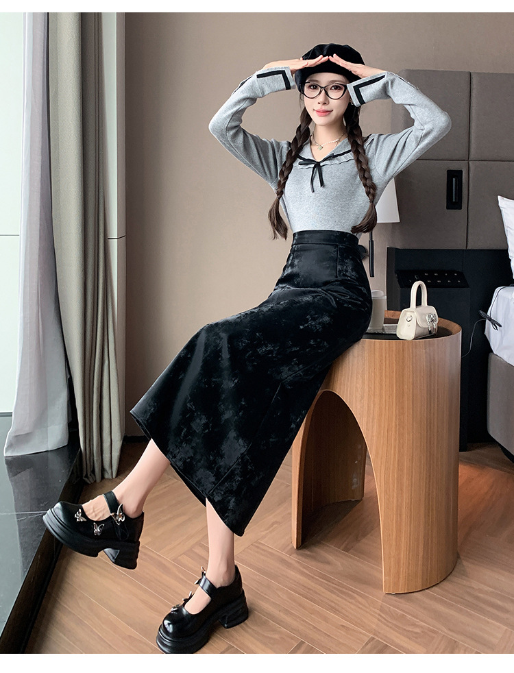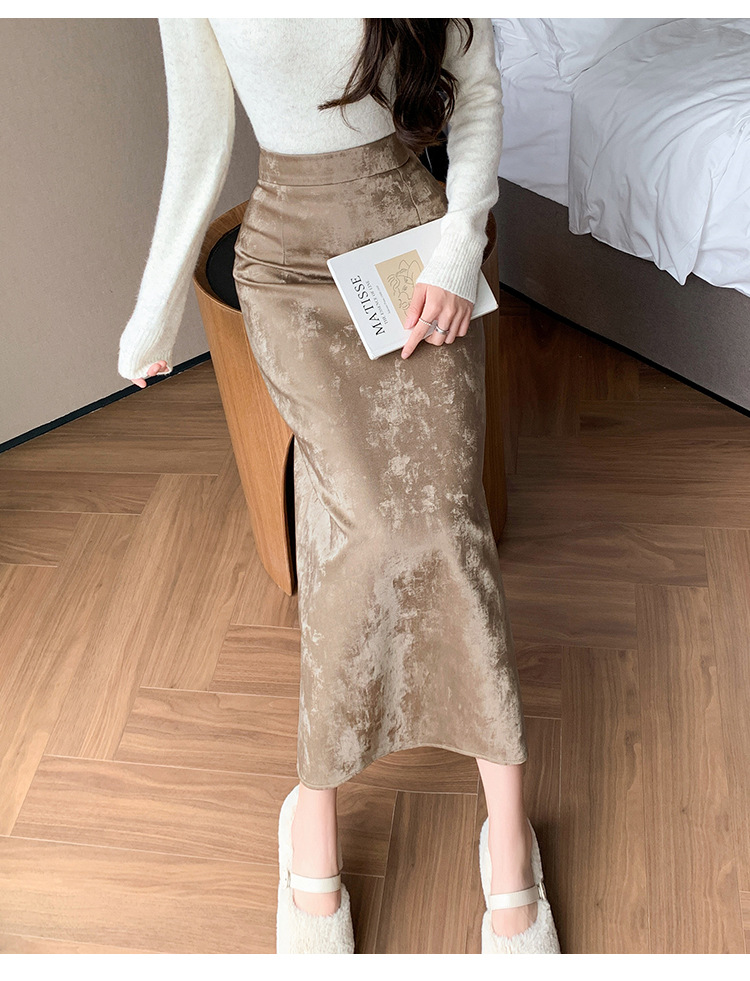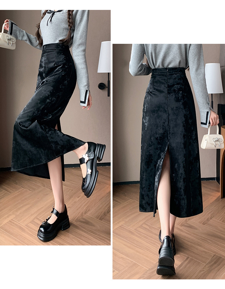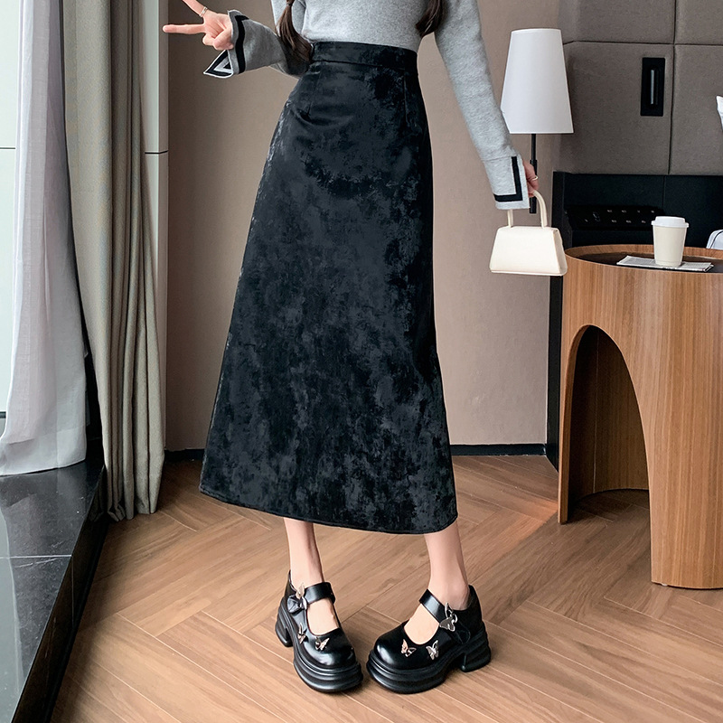 Guofeng 스트레이트 가죽 스커트 여성의 가을과 겨울 새로운 중간 길이 스플릿 스커트 pu 가죽 스커트 슬림 조커 오버 스커트 도매스토어 가기