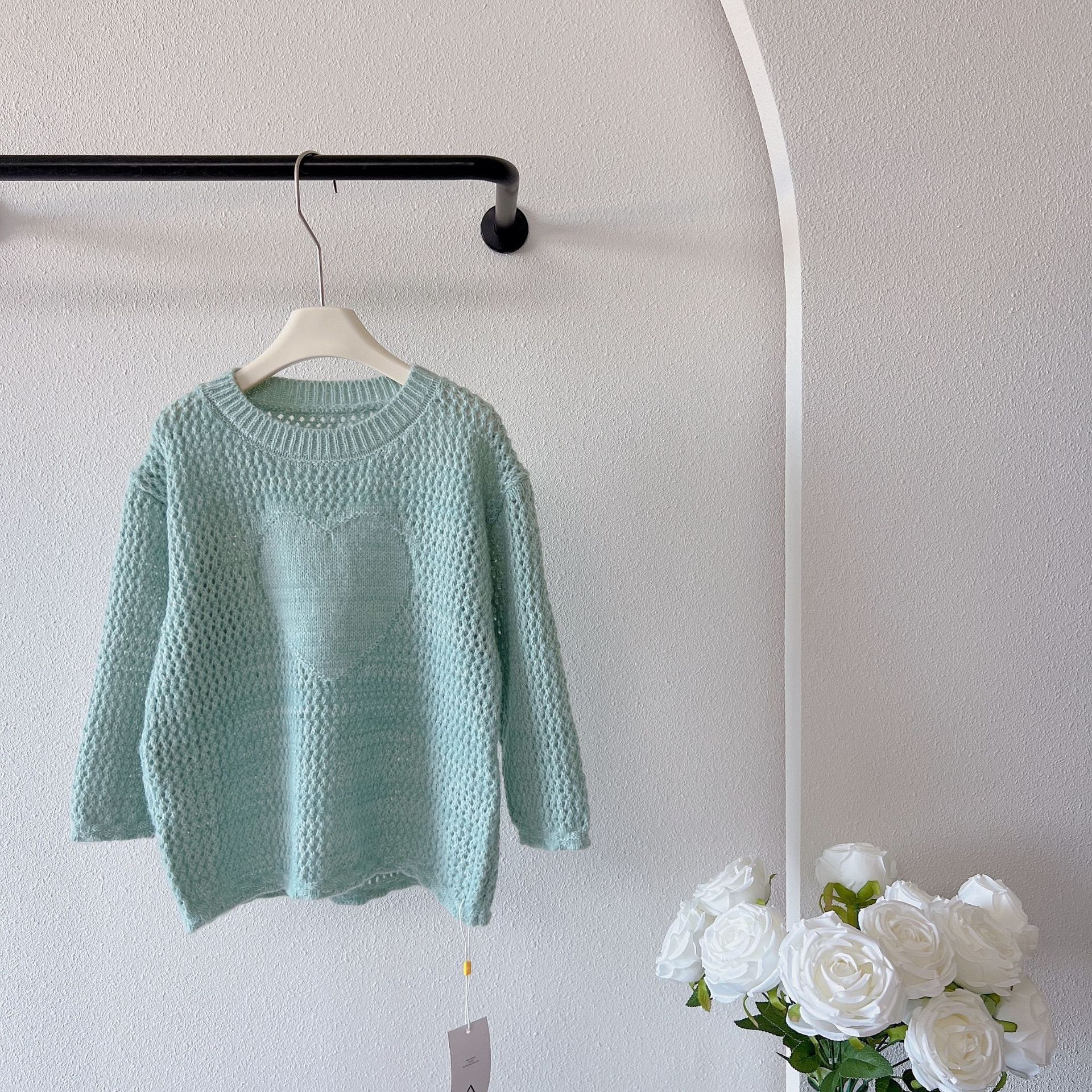 어린이 톱 2024 소녀 가을 새 24789 맑은 색 사랑 한국식 풀오버 스웨터스토어 가기