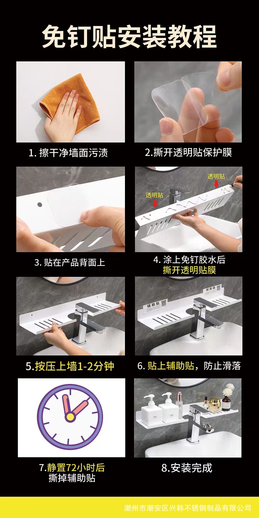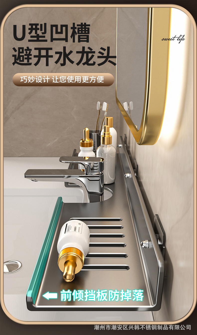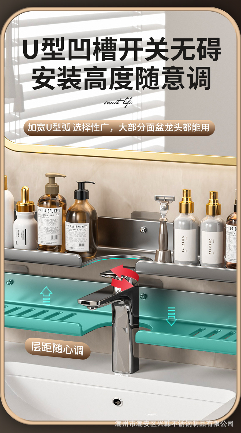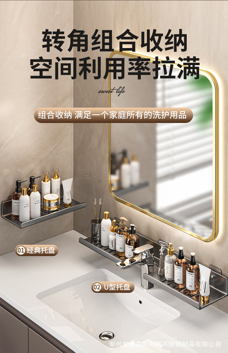 수도꼭지 스토리지 랙 U 자형 카운터 탑 스토리지 랙 탄소강 비 천공 벽 장착 가정용 화장실 스토리지 랙