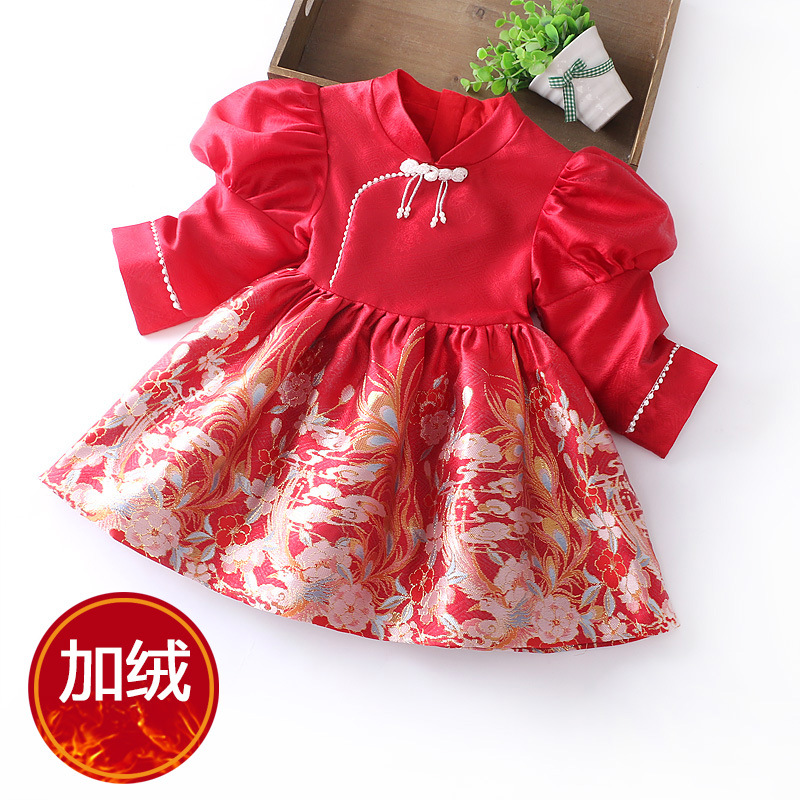 소녀 원피스 봄 가을 겨울 긴 소매 치마 공주 원피스 아기 소녀 1 년 된 원피스 기모 9615스토어 가기