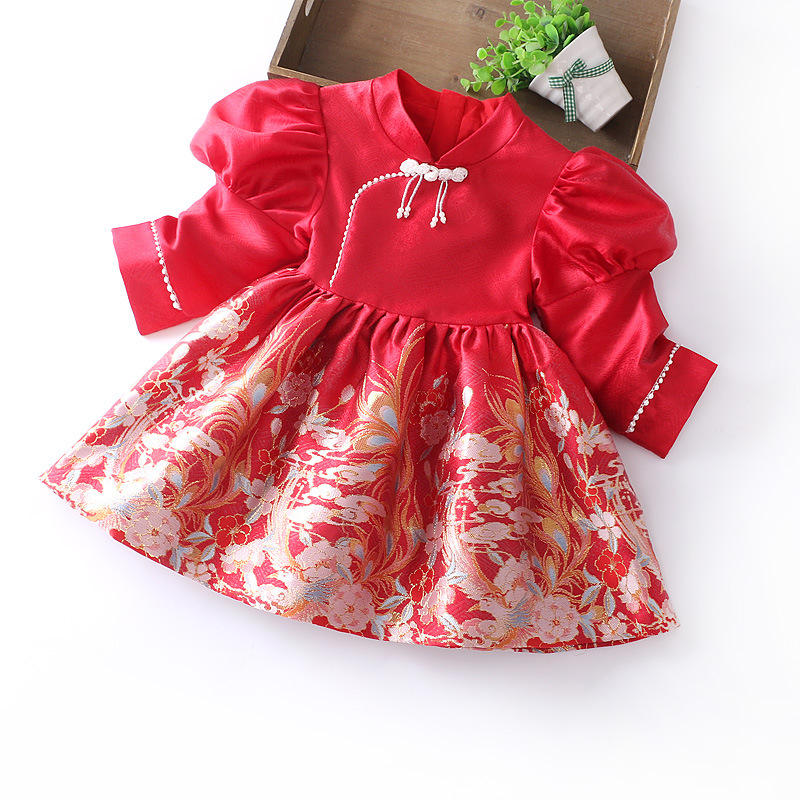 소녀 원피스 봄 가을 겨울 긴 소매 치마 공주 원피스 아기 소녀 1 년 된 원피스 기모 9615
