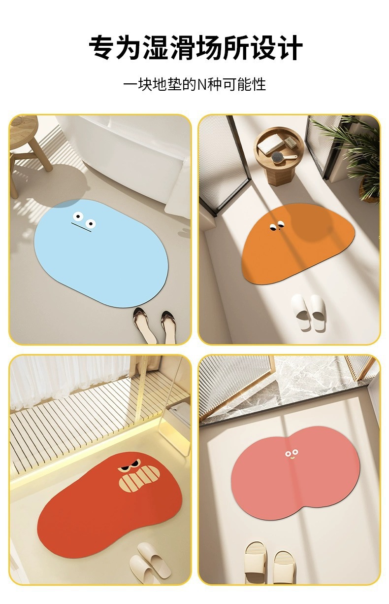 재미 있는 Diatom 진흙 바닥 매트 화장실 문 흡수성 바닥 매트 가정용 화장실 빠른 건조 미끄럼 방지 발 매트 홈 카펫