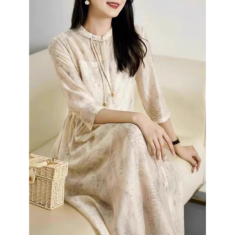 멜빵이있는 고전적인 매력 기질 쉬폰 원피스 가을 새로운 술 버클 멋진 달콤한 중간 길이 스커트스토어 가기