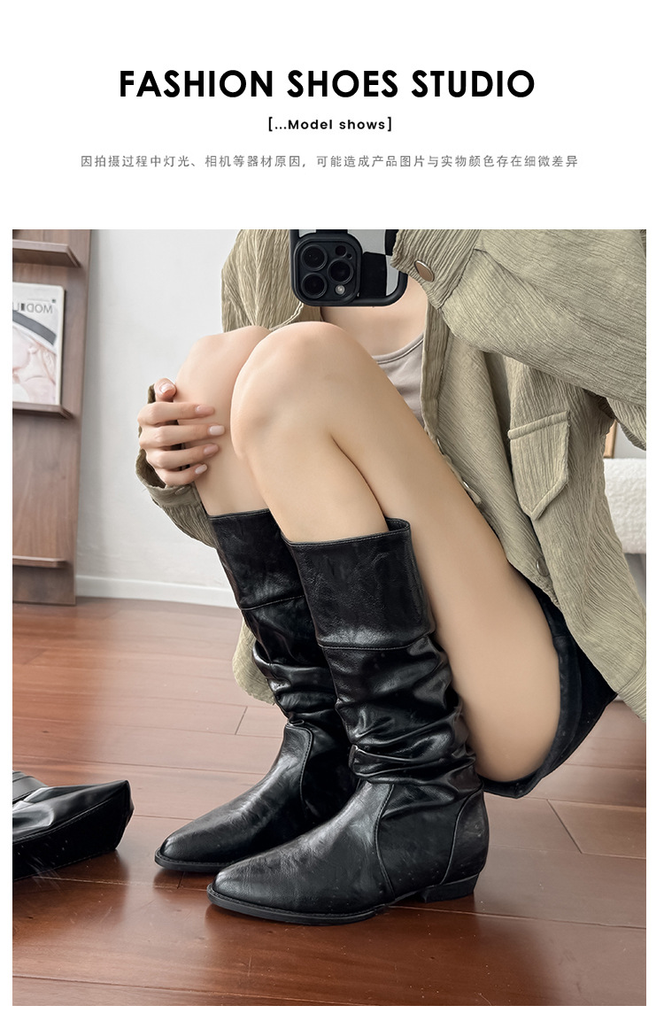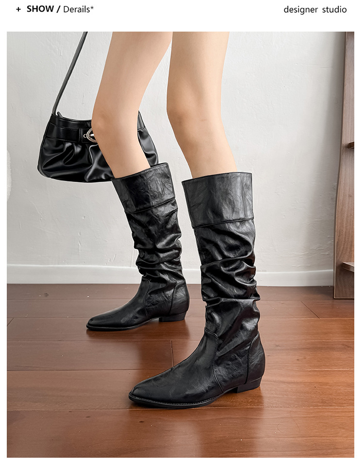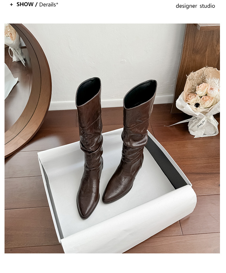 고급스러운 품질~! 여성용 가죽 뾰족코 하이힐 롱부츠, 키 작아도 키가 커보이고 날씬해 보이는 슬림핏 부츠
